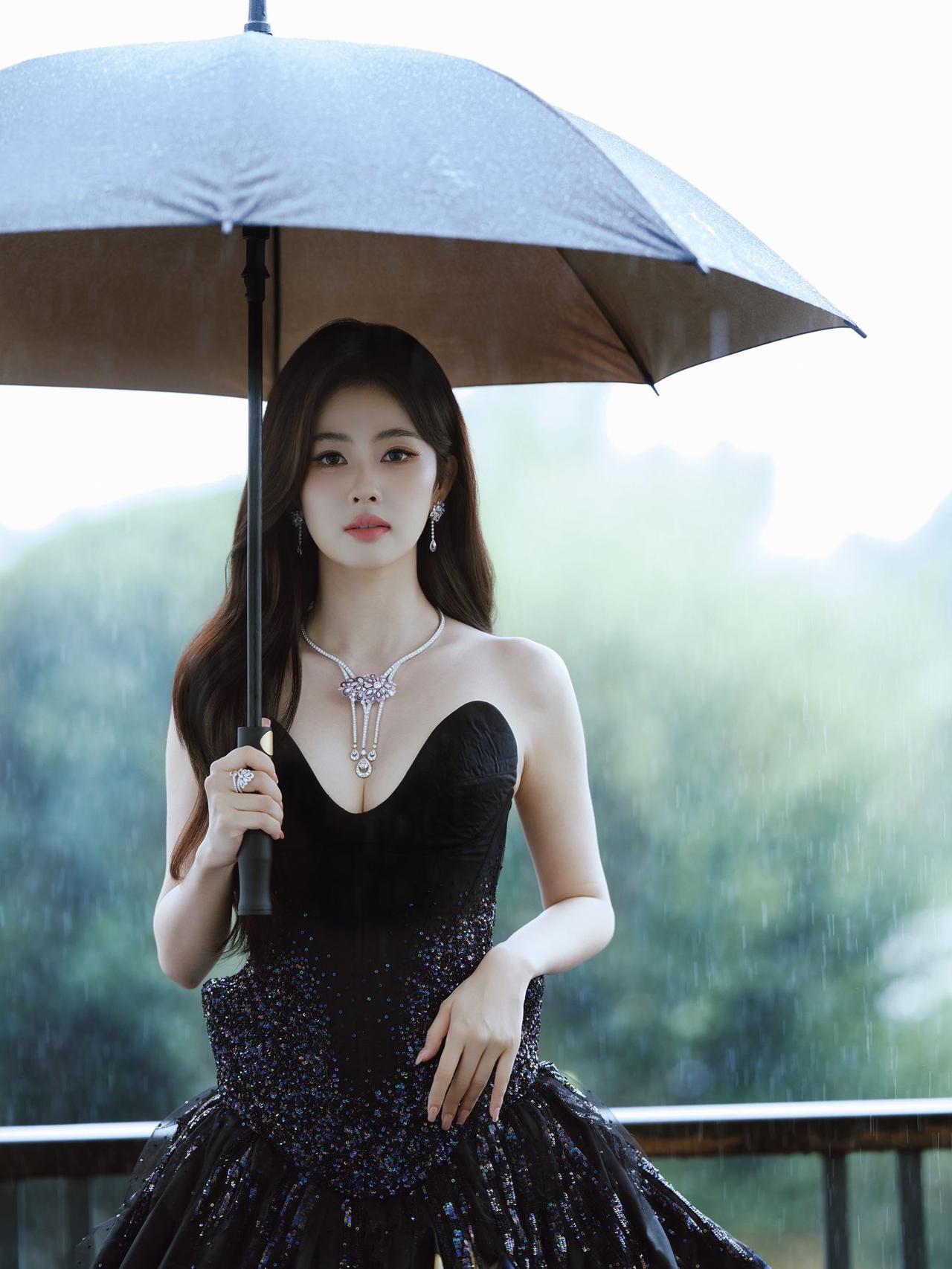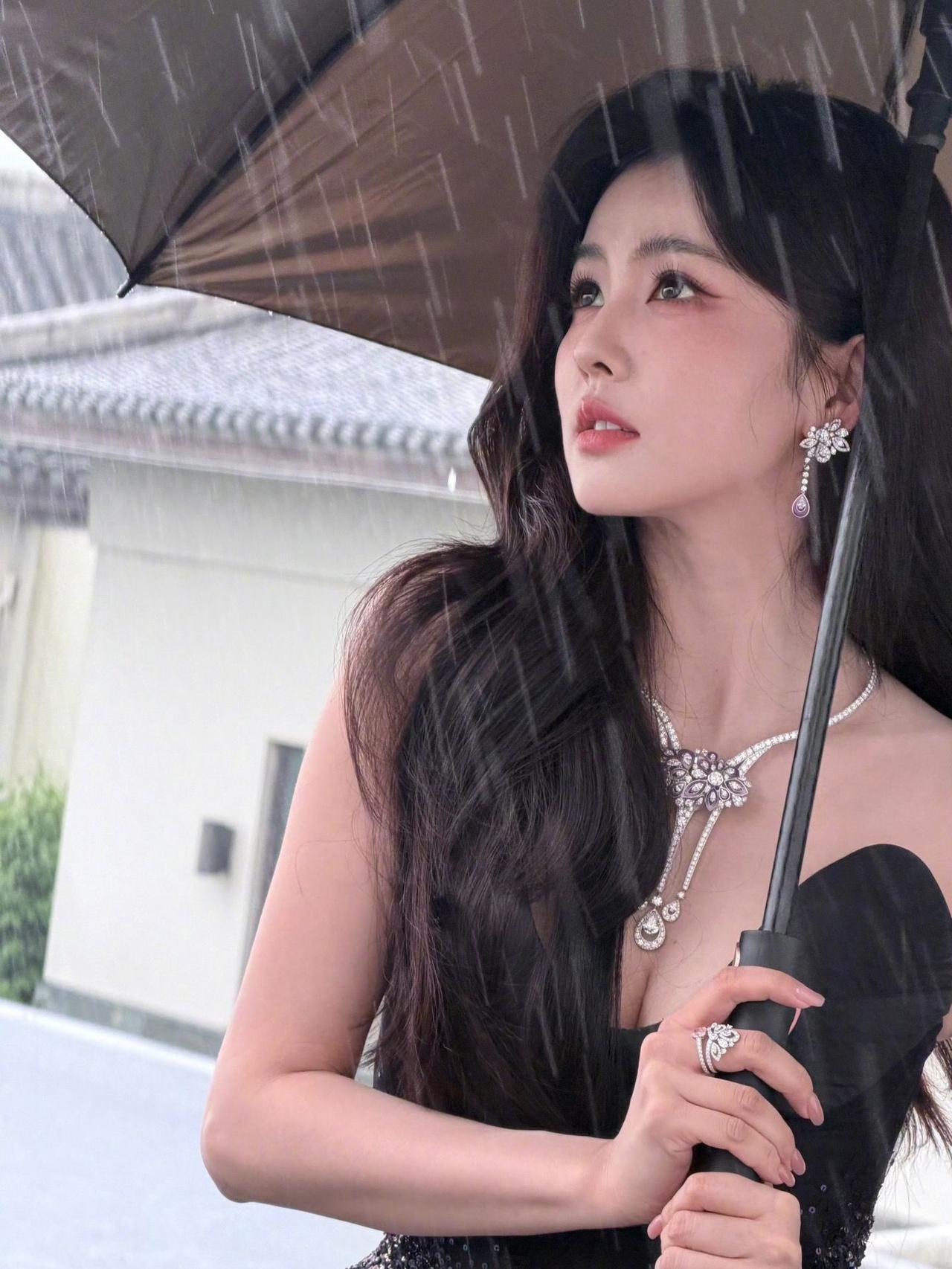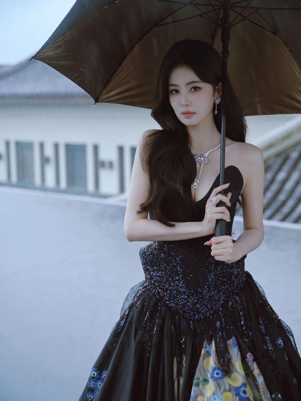 黑裙抖落碎钻,像把夜空裁成了裙摆