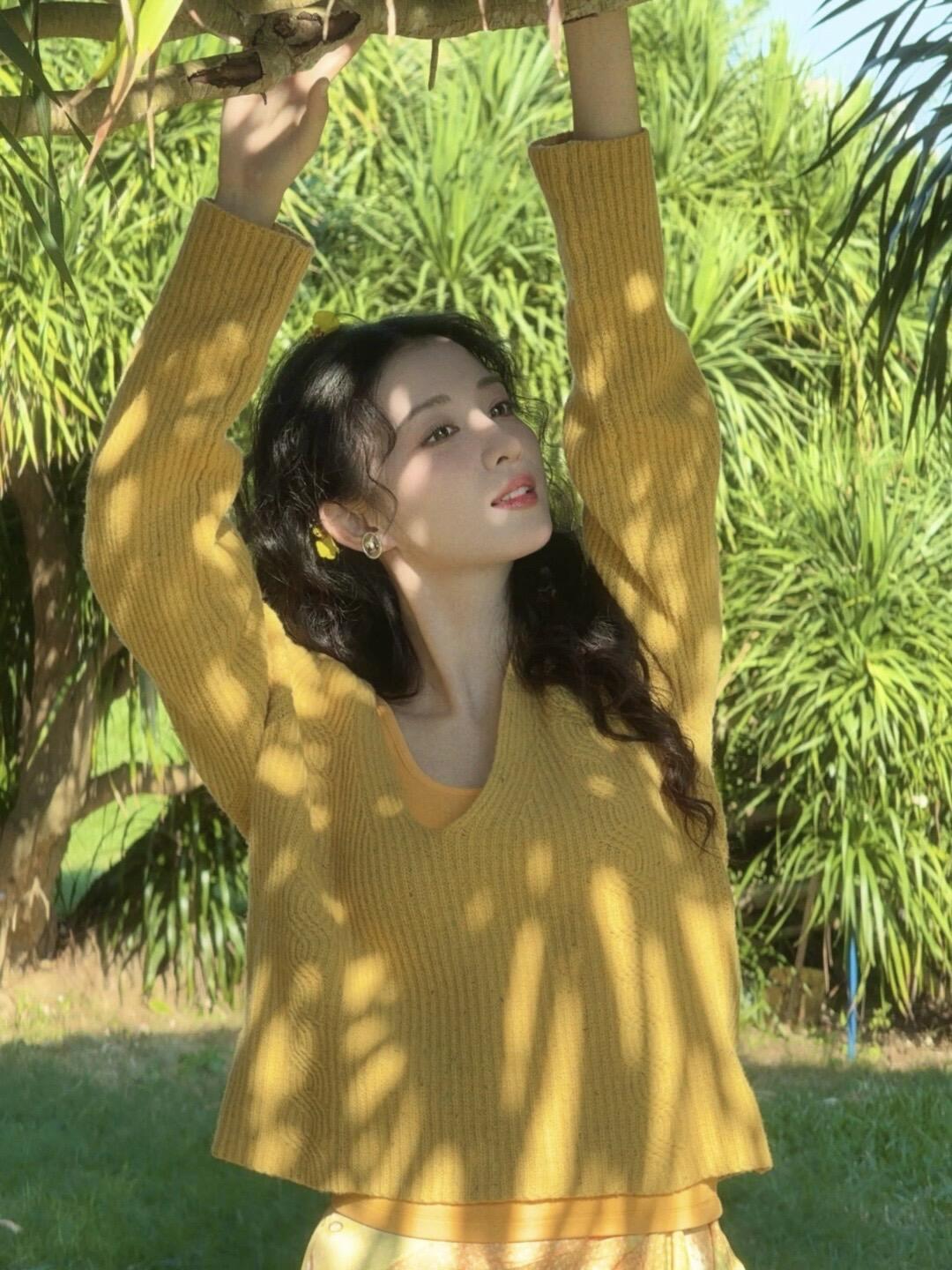 毛衣的暖黄接住了正午的太阳