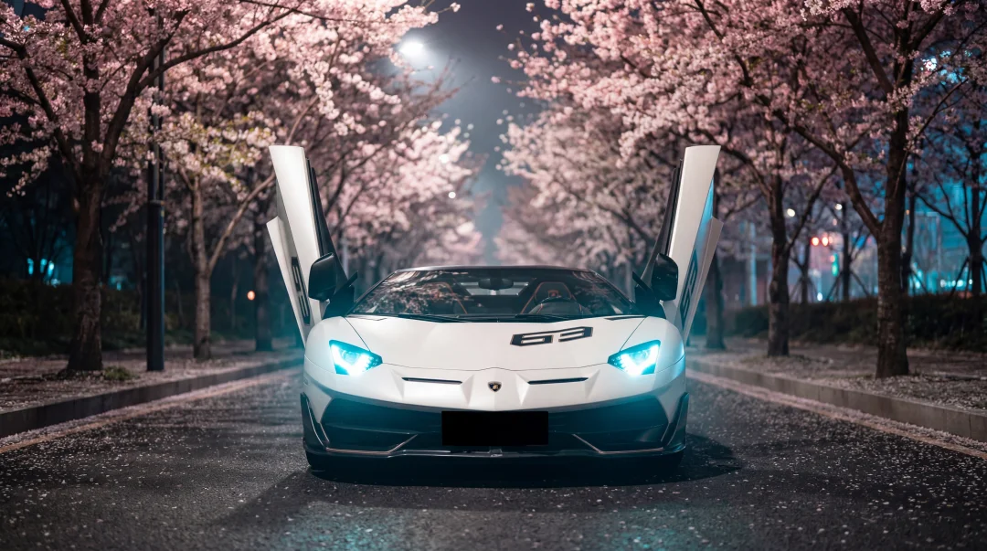 有什么比武汉樱花树下的兰博更浪漫的呢?