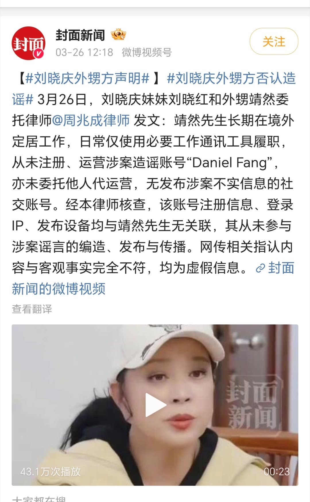 刘晓庆外甥方否认造谣 别的不说,刘晓庆发的这个截图里面的人确实不是她外甥,这个人