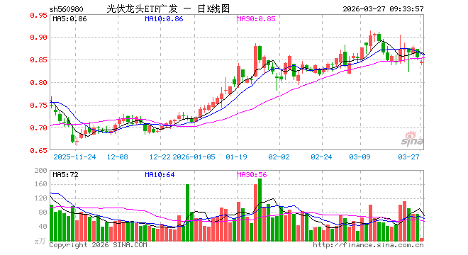 3月27日,光伏龙头ETF广发(560980)开盘跌1.52%,报0.841元。光伏龙头ETF广发(560980)重仓股方面,特变电工开盘跌1.84%,TCL科技跌0.47%,阳光电源跌0.01%,迈为股份跌2.81%,德业股份跌1.64%,正泰电器跌2.58%,捷佳伟创跌3.01%,晶盛机电跌0.70%,阿特斯跌2.14%,科华数据跌2.36%。