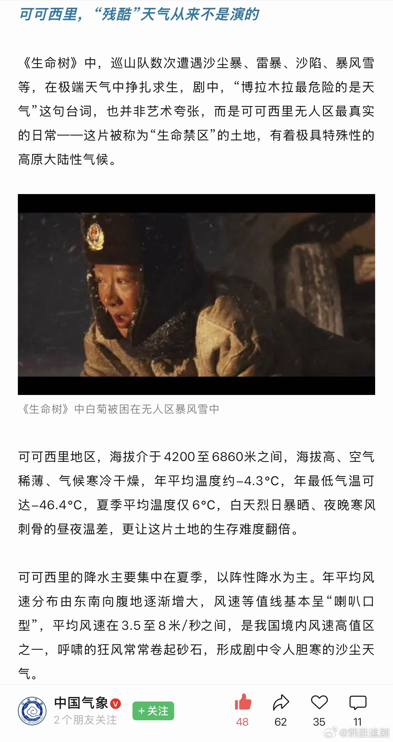 杨紫生命树好强!🌳中国气象:《生命树》中,巡山队数次遭遇沙尘暴、雷暴、沙陷、暴风雪等,在极端天气中挣扎求生,剧中,“博拉木拉最危险的是天气”这句台词,也并非艺术夸张,而是可可西里无人区最真实的日常。