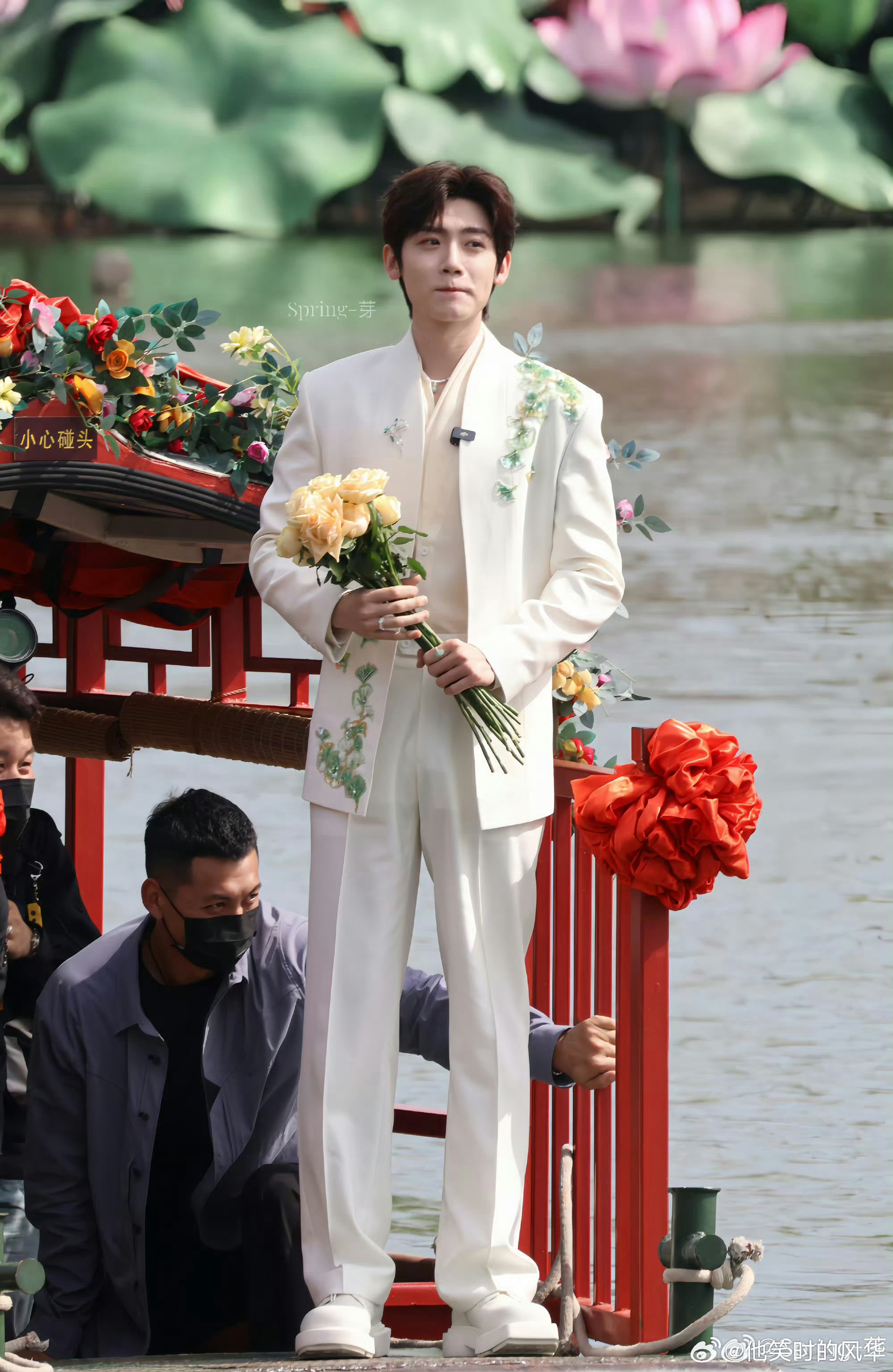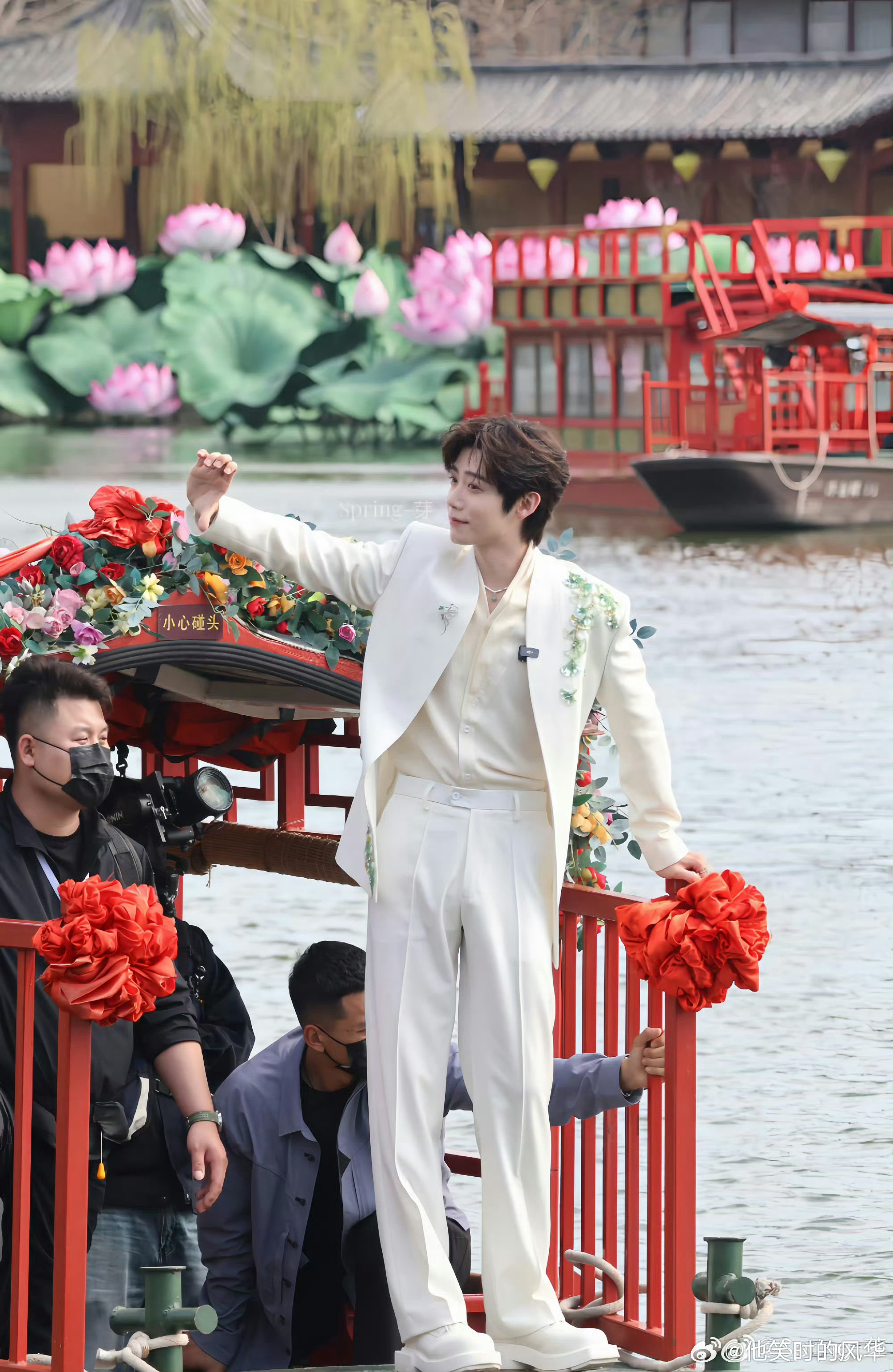 李卿新中式白西装李卿白马王子来的 谁被这身造型帅到了?李卿花船巡游穿新中式白西装