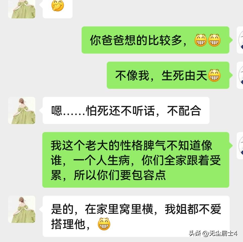 胃癌后,病疼折腾我,但我绝不能折腾家人…… 去医院多了,看到各类心态的病人也就多了,有的病房内传出各种和谐笑声,但有的很多传出叫骂声,甚至还有摔东西的声音,还有的家属被骂的跑出病房痛哭的…… 其实作为胃癌患者,也能理解一些癌症患者的心情,有些患者的情绪或许跌到了谷底,那种发泄是对癌症的恐惧,是求生的欲望。但是这种宣泄不要拿家人作为出气筒。 癌症患者固然不辛,但是作为家人也同样不幸,为了照顾病人,家里家外,工作生活全部打乱,生活节奏不仅加快,压力所以也随之加大,更难以承受的是心理压力。所以作为癌症患者本人,除了考虑自己,也要想到家人的感受。只有自己心里强大了,对家属好点,体贴点,家属才能更好的照顾你,伺候你!下面两张截图是和一位癌症患者家属聊天记录,充分说明癌症患者一定要放松心态,这不仅有利于自己的恢复,不要让家属一起受累,否则终会害了自己。 不过发现一点,在网上交流治疗经过的癌症患者,一般心都很大,外向,不喜欢封闭自己,这样的人肯定对家人很不错,更有利于自己的康复! 胃癌 癌症 抗癌日记 抗癌的那些事 胃癌胃炎 胃癌症 与癌共存的日子