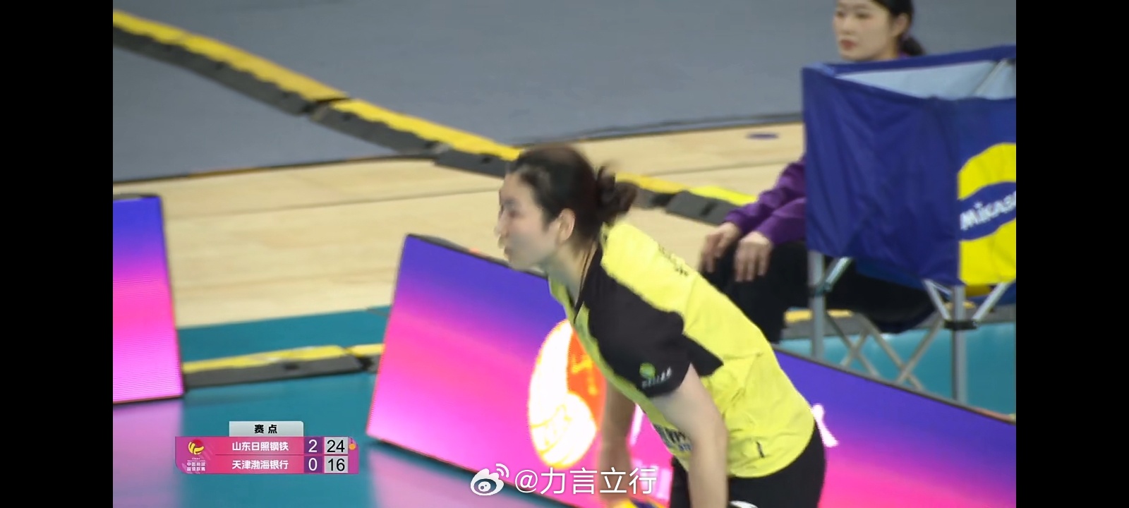 中国女排排超联赛 第三局山东女排25比16天津女排,在季军争夺赛第二回合中3比0