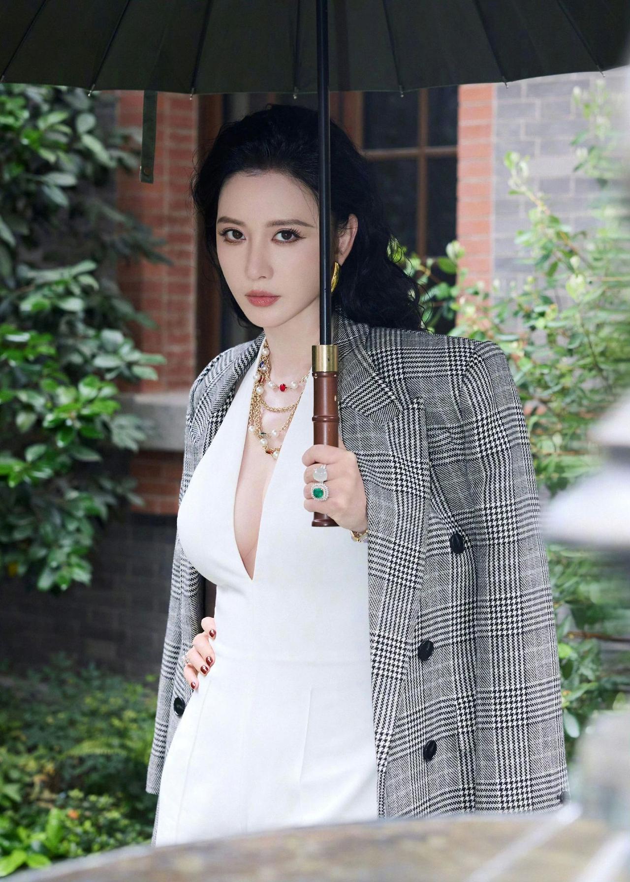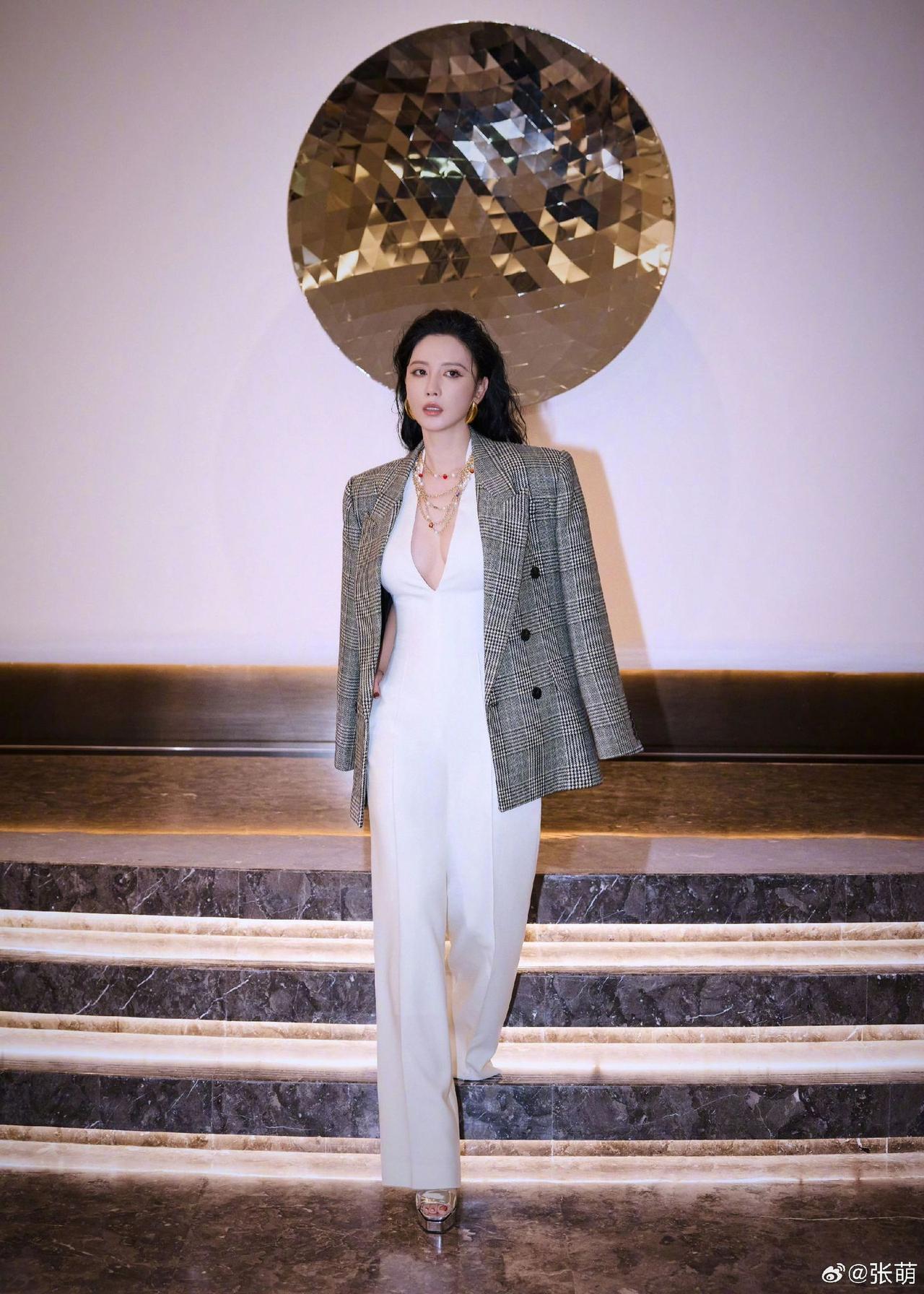 张萌 格纹披在肩头 像裹住半城的风与光 白裙裁成利落的线条 把温柔藏进棱角里 金链叠着珍珠与彩宝 耳坠晃出金属的声响 指尖的绿宝石 是夜色里最亮的星芒 电梯门开合时 伞骨撑起一方晴朗 眼神穿过玻璃与酒柜 比香槟更先抵达远方 你坐在台阶上 姿态是无声的宣言 不必言说 便已将都市的锋芒穿在身上