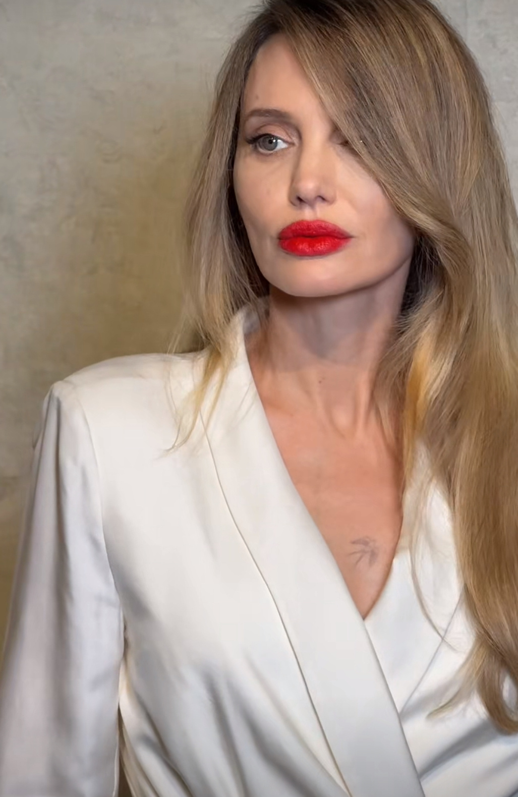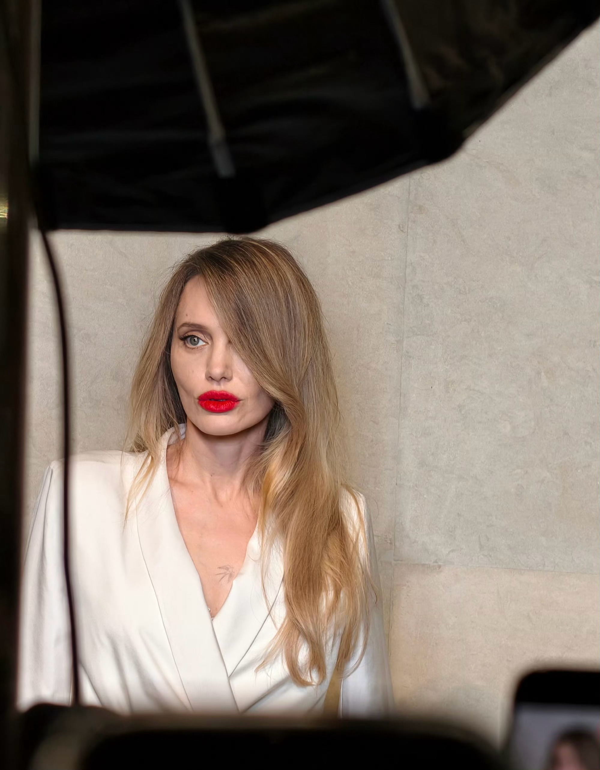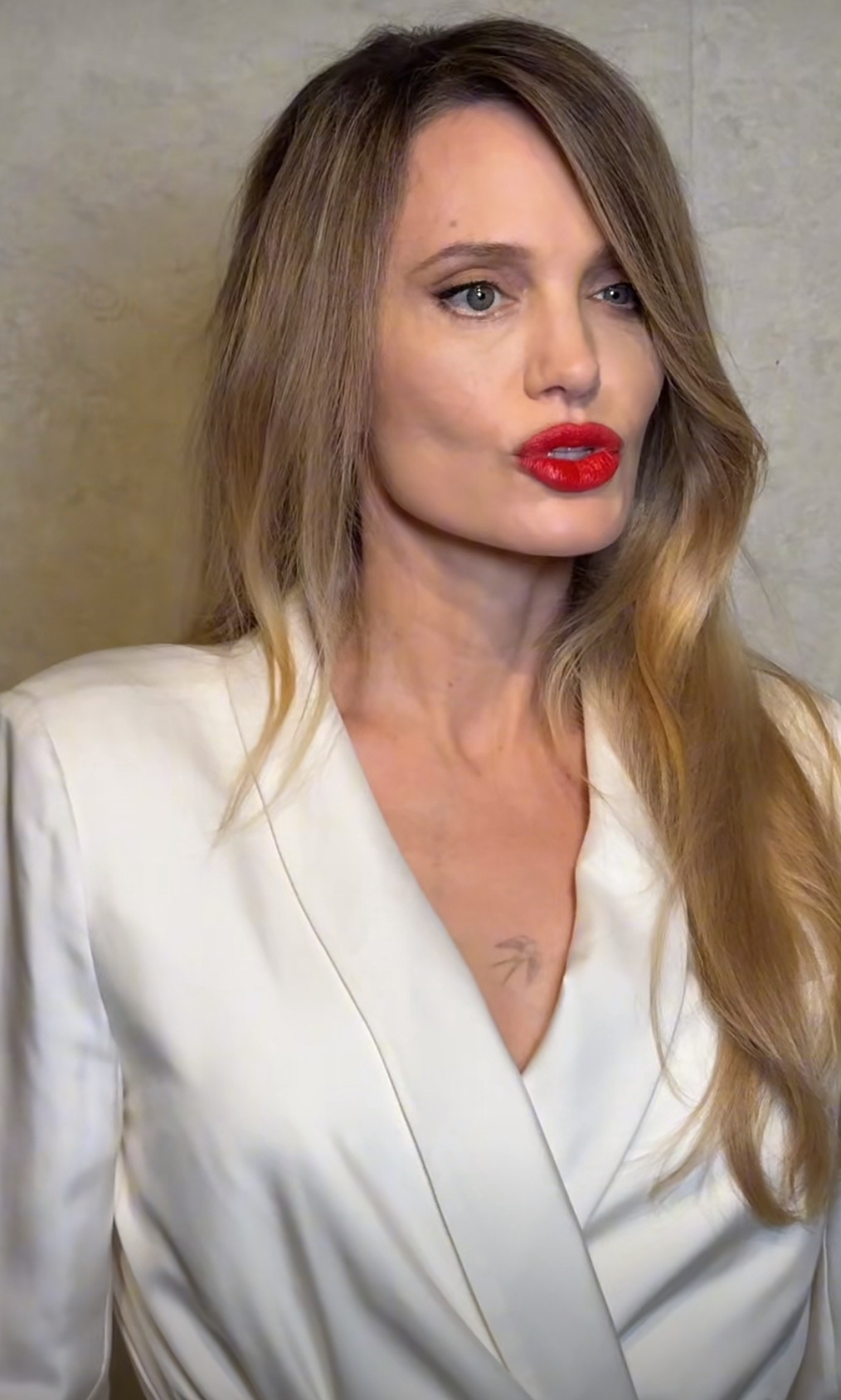 Angelina Jolie一身白裙搭配红唇造型亮相上海TOM FORD BEA