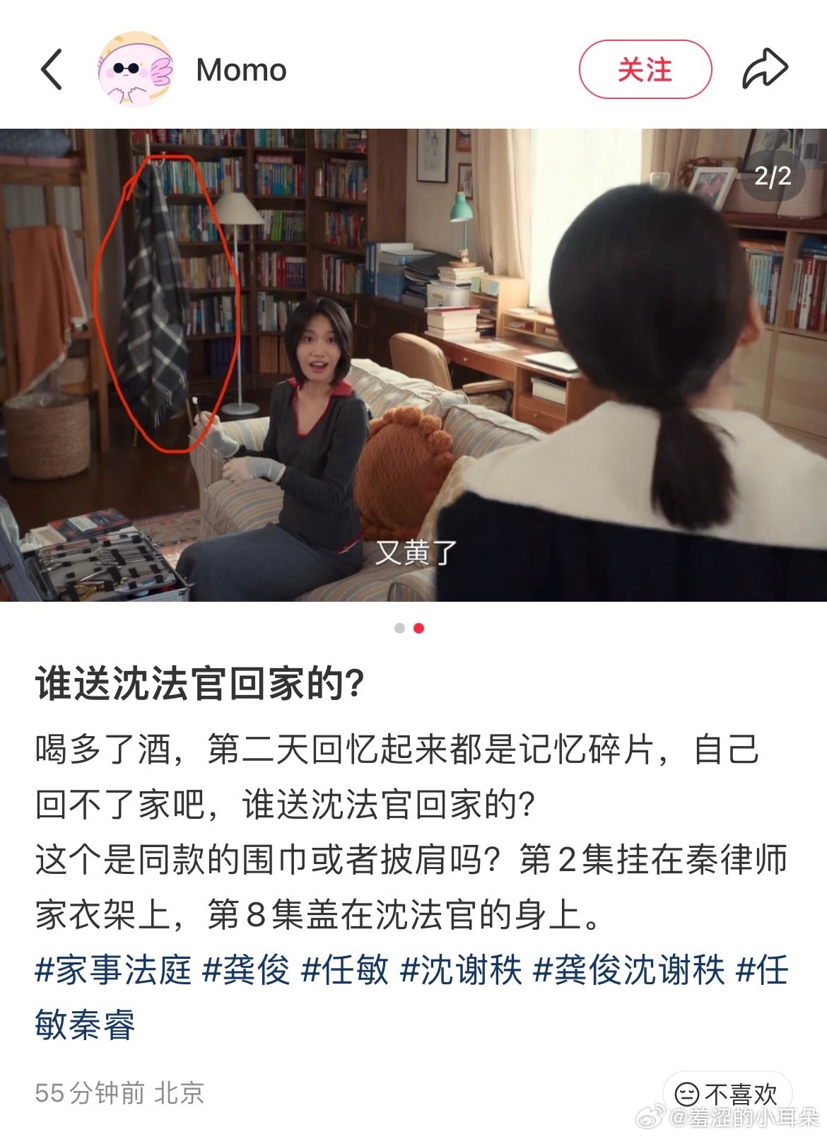 嘻嘻嘻,嘿嘿嘿,还是🍠人会磕。家事法庭剧组细节控,看剧的人也是细节控。都是老CP人了,一条围巾也能找到磕点