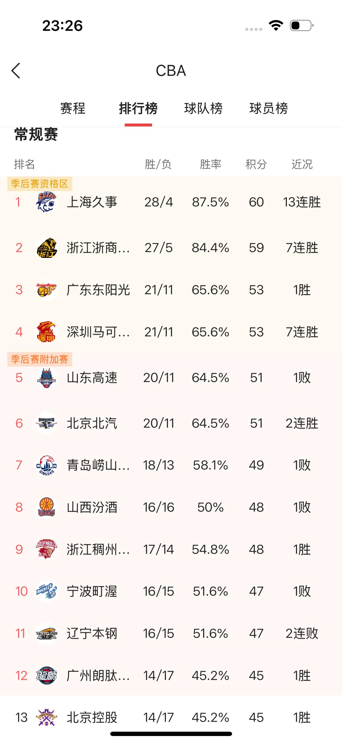 今天是2026年3月30日,CBA常规赛一共有六场比赛。