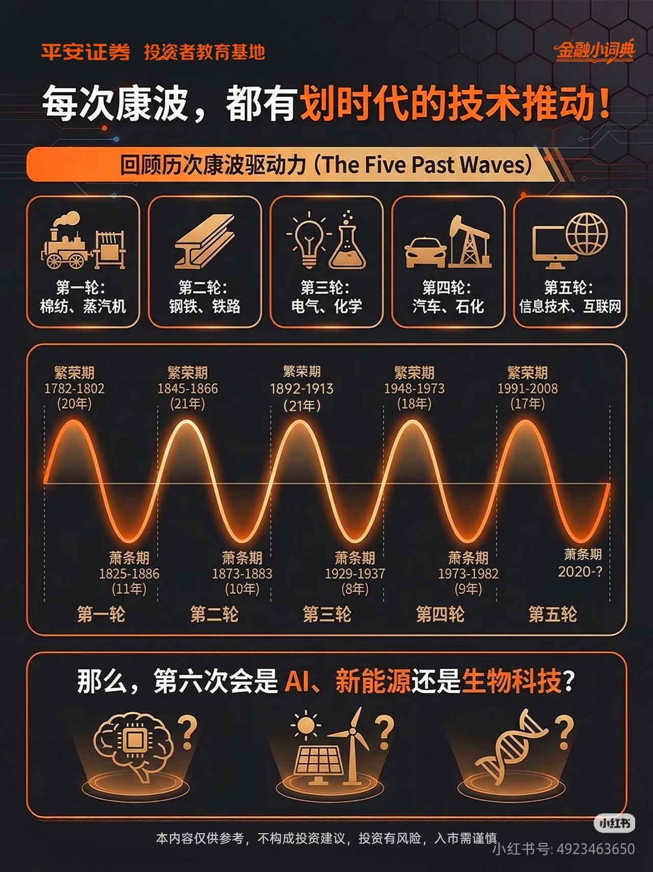 康波周期速记口诀来了!普通人抓财富就靠这几句 人生发财靠康波,不懂周期再努力也白搭! 给大家整理了康波周期大白话速记口诀,一眼看懂四季、历史、应对方法,收藏起来随时看👇 ✅ 周期四季:春复苏买科技债,夏繁荣买股房产,秋衰退拿商品,冬萧条守现金 ✅ 历史五轮:蒸汽→钢铁→电气→汽车→互联,下一轮就是AI/新能源 ✅ 应对心法:定坐标、抓技术、顺境布局逆境守,理性不迷信周期 投资干货 康波周期 财富思维 散户避坑 ⚠️ 免责声明:本文仅为科普,不构成投资建议,投资有风险,入市需谨慎。