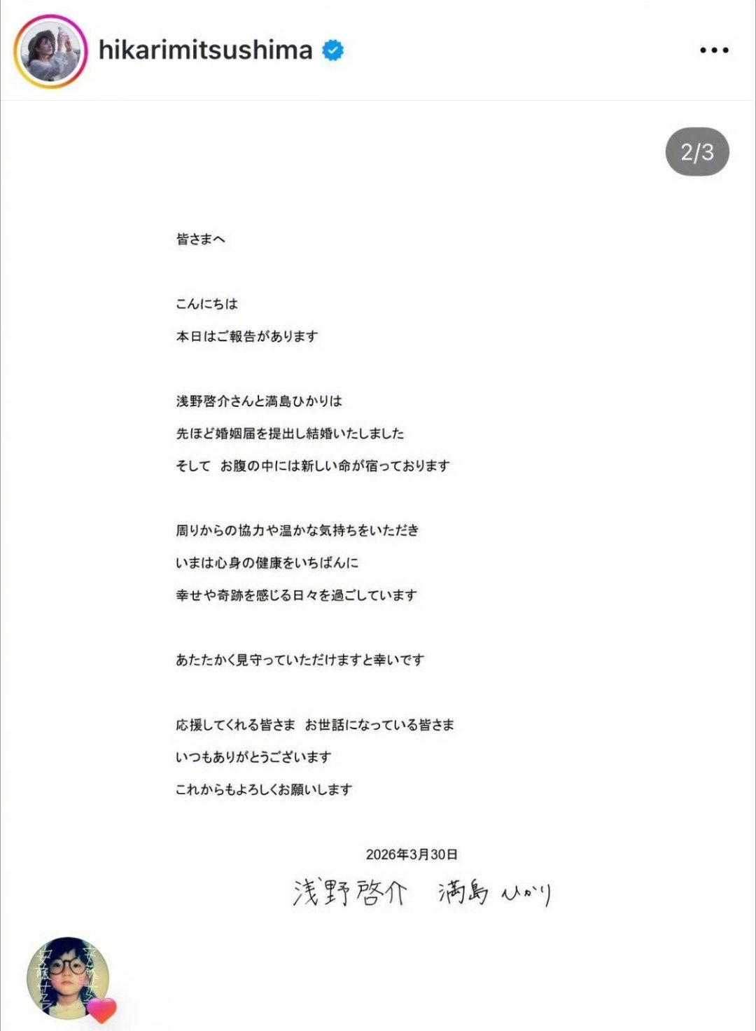 满岛光再婚怀孕恭喜满岛光!30日官宣再婚并怀孕,丈夫是模特浅野启介,迎来人生新阶