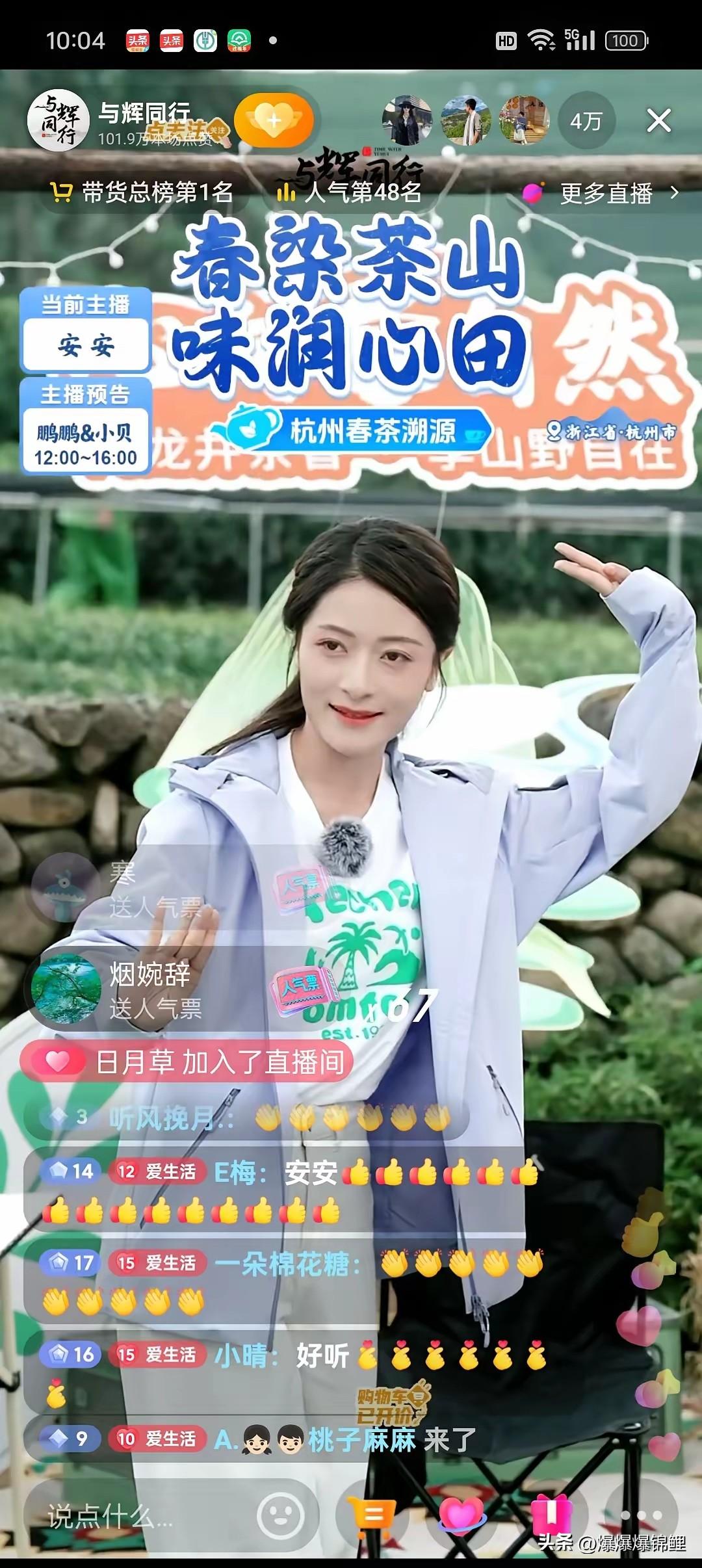 安安这会儿还在杭州茶园冒着雨做户外直播,直播间里早就炸锅了。