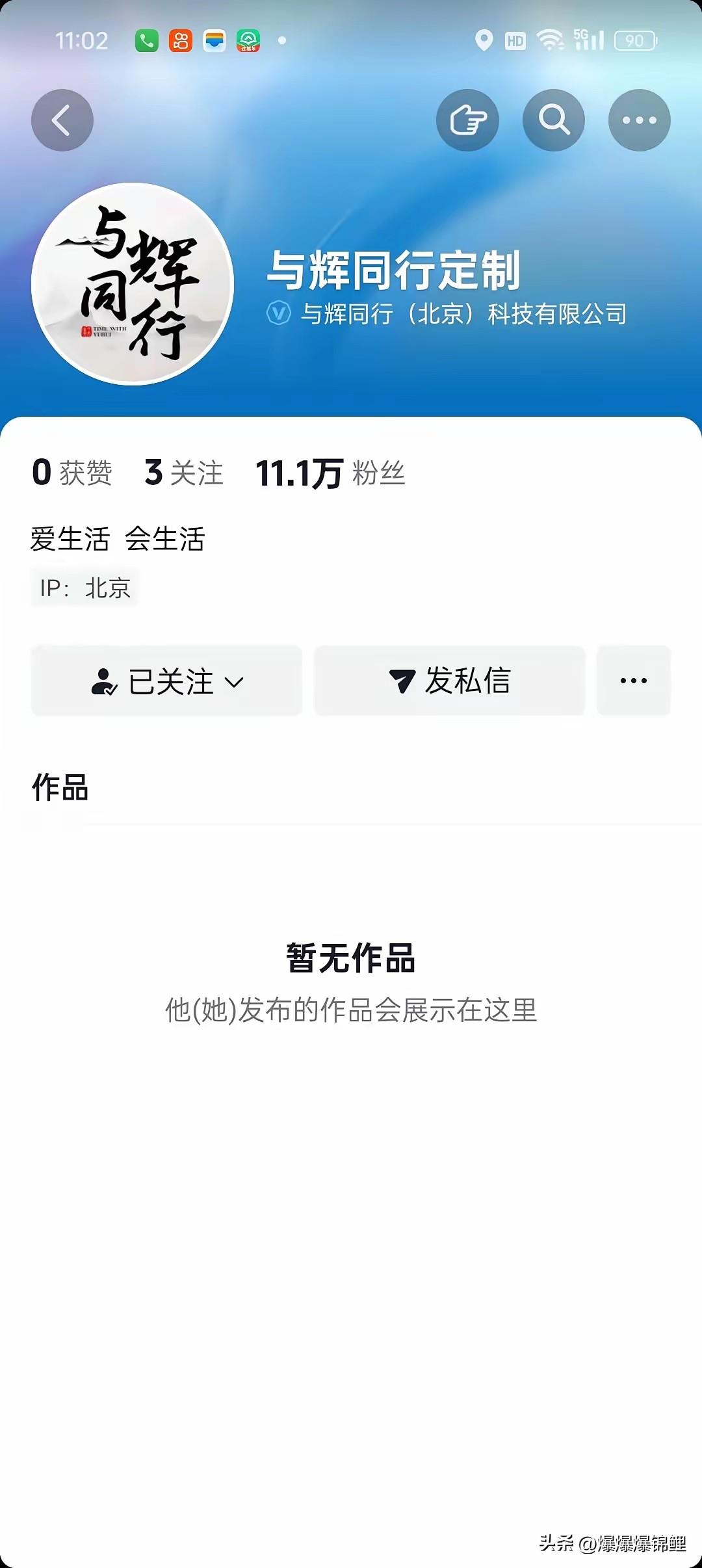 “与辉同行定制”新账号才冒头3小时,粉丝直接飙到了11.1万。眼看着这数字蹭蹭往上涨,刷新一下变个样。