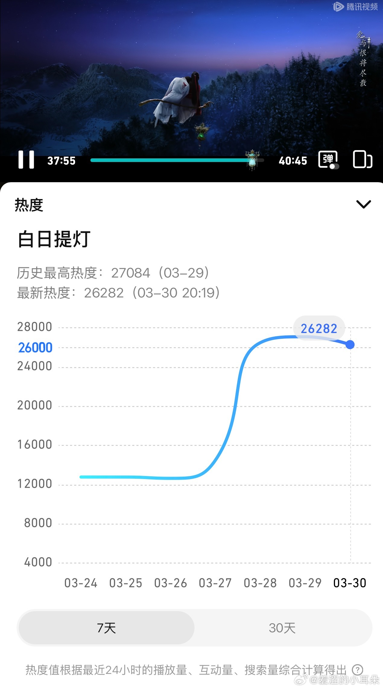 白日提灯播出第三天热度20:00就开始下降了,不说破3W,现在是28000都费劲。真的如热巴脱粉小作文写的一样,她不会再有热播剧了。