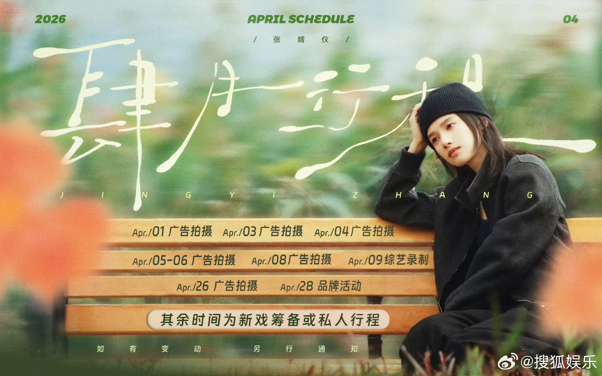 白鹿、宋祖儿、陈都灵、刘雨昕、张婧仪、李兰迪四月行程图 公布,漂亮女孩们美好四月天继续走花路🌺