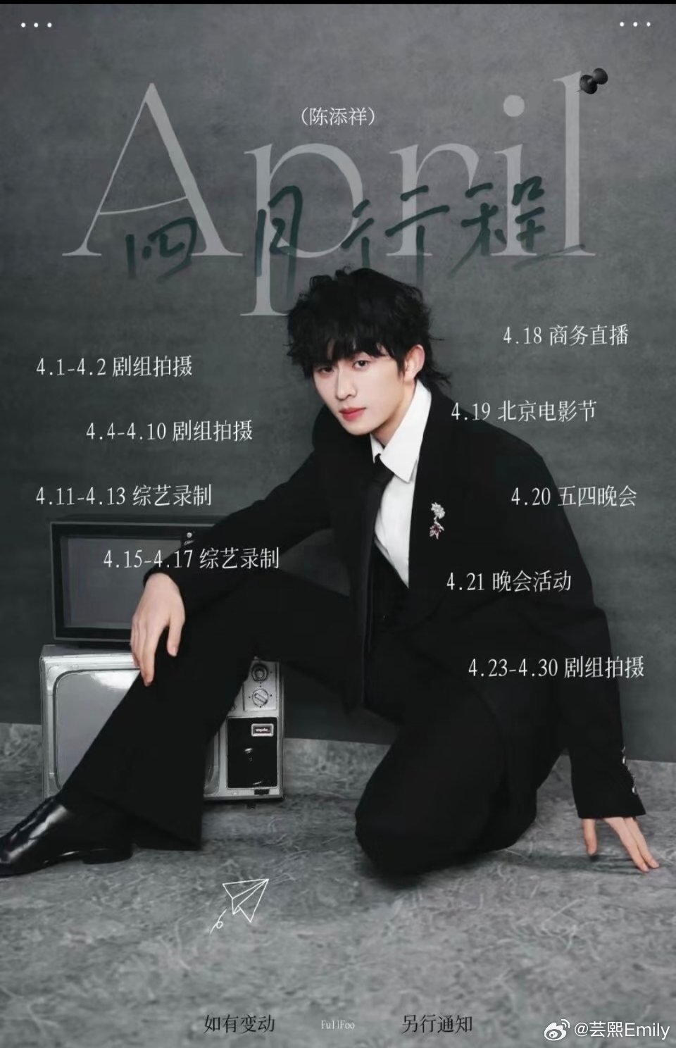 短剧演员四月行程图,陈添祥、沉思、王小亿刘萧旭、王格格、梁思伟、王凯沐、谭盐盐、