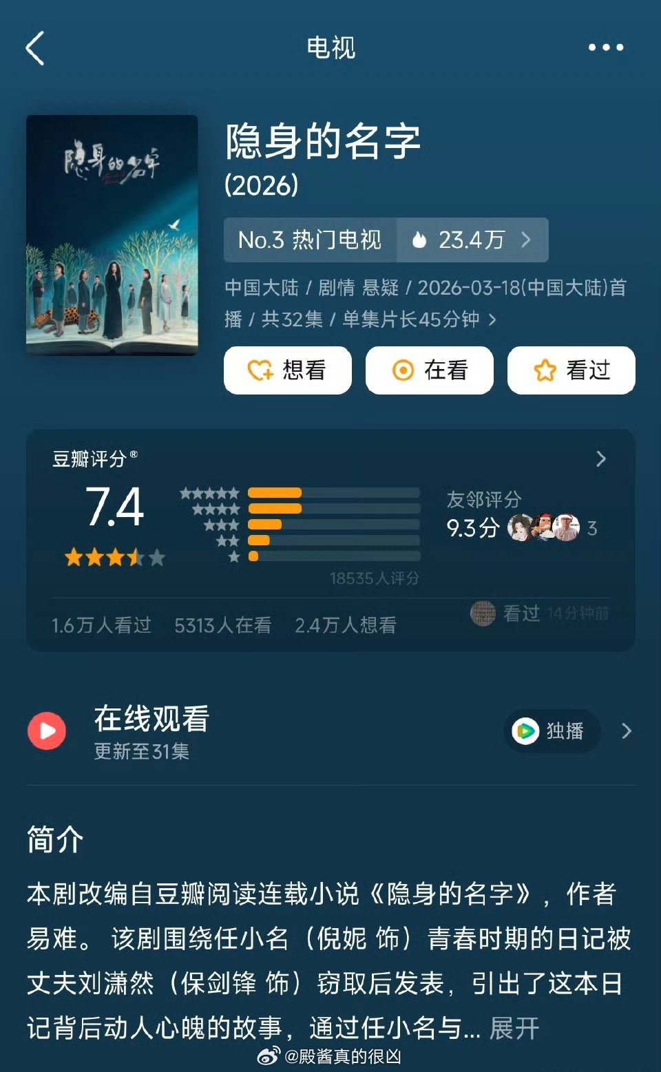 85🌸作品的豆瓣评分倪妮 隐身的名字7.4杨幂 生万物7.2赵丽颖 小城大事7