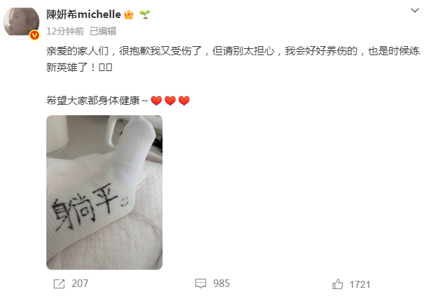 陈妍希受伤了,可惜热度过了,不然肯定上热搜。前一阵子《狙击蝴蝶》大家还记得吧,她和周柯宇饰演的姐弟恋,因为40+但依然好看,收获了不少新粉丝。随着剧集播完,演员热度下降是正常的,好在她还有忠实粉丝,给粉丝报平安也算宠粉。