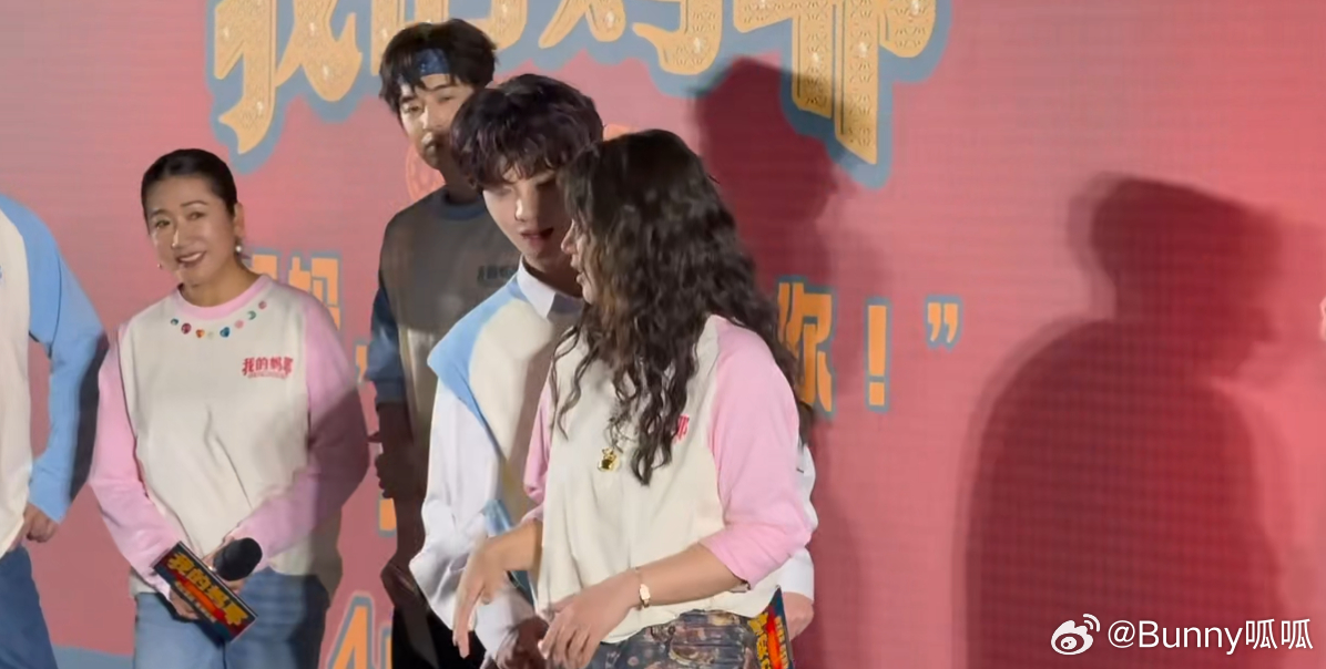 马思纯黄明昊再跳没有明天 首映礼舞台上,两人再次跳《没有明天》,动作整齐划一,笑容灿烂迷人,观众仿佛被感染,情绪高涨。