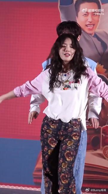 马思纯黄明昊再跳没有明天 首映礼舞台上,两人再次跳《没有明天》,动作整齐划一,笑