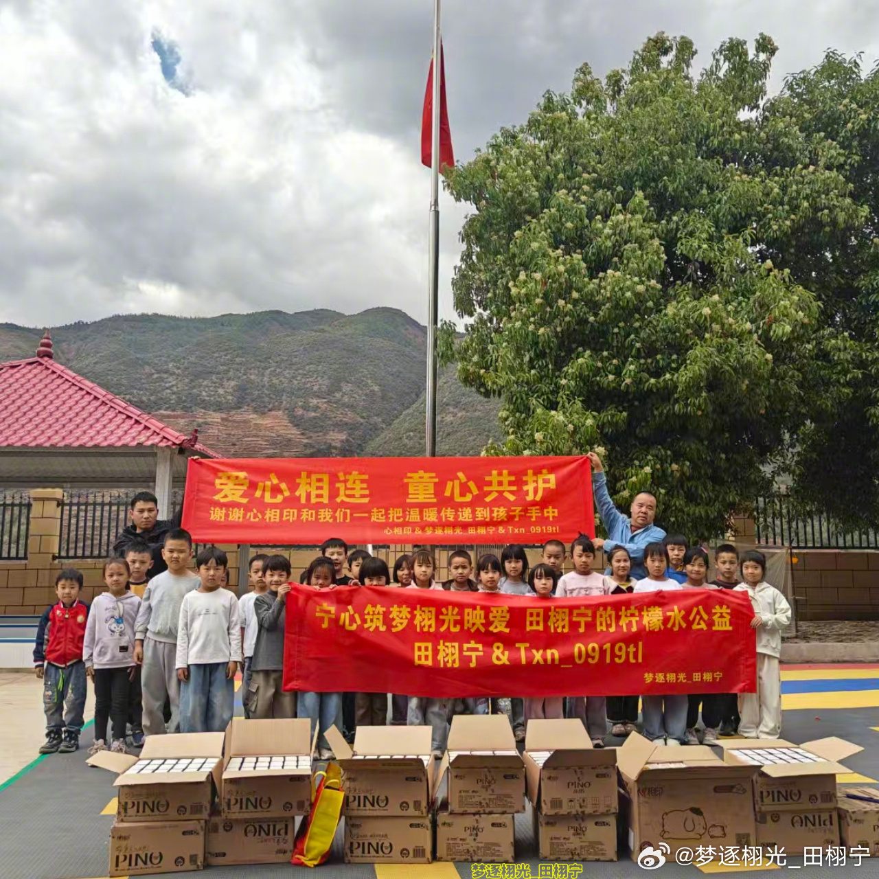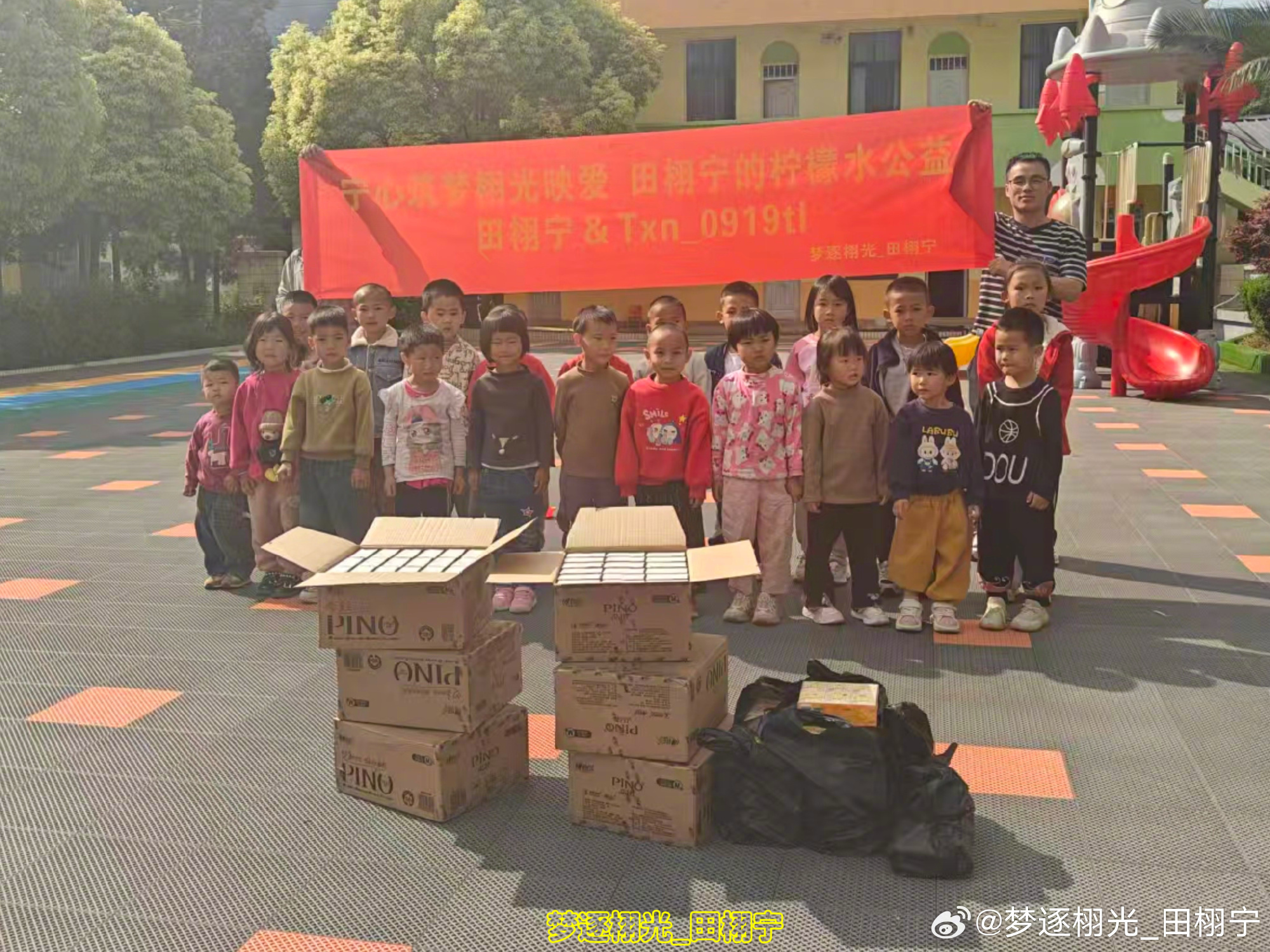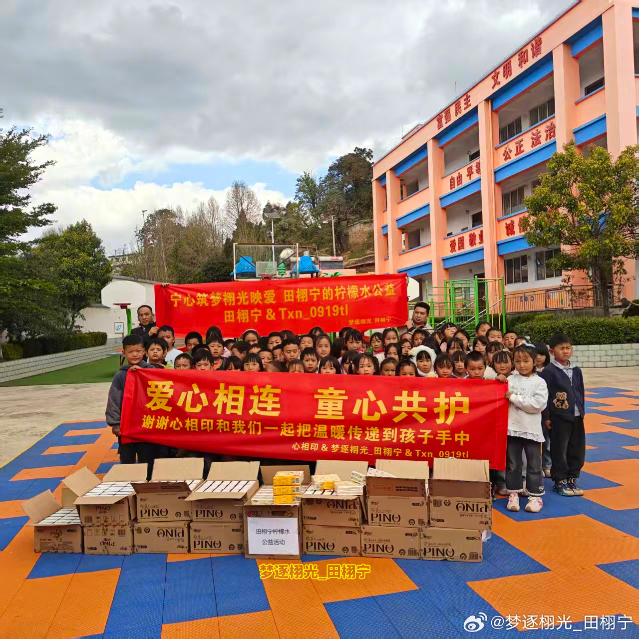 田栩宁粉丝公益反馈 田栩宁粉丝云南山区心相印公益反馈 ,为云南乡村小学送去暖心物资,田栩宁和他的粉丝柠檬水公益不停,爱无止境,满满正能量