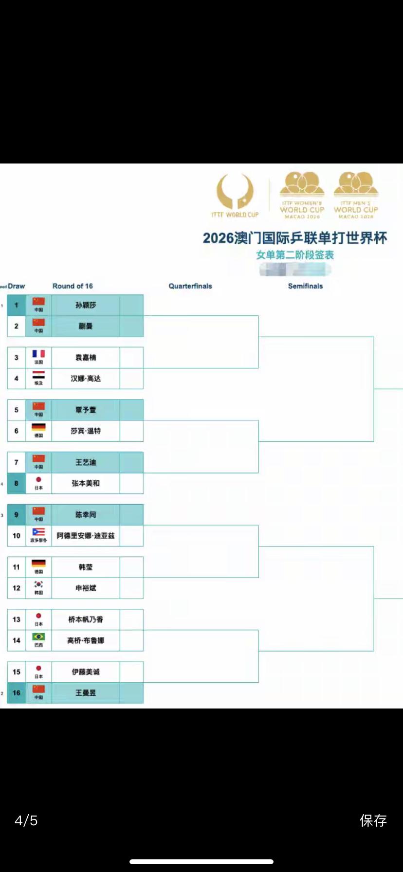 这是怎么抽签的?参加2026澳门国际乒联单打世界杯女单第二阶段签表来说,对于中国乒乓球选手真的是不利呀!