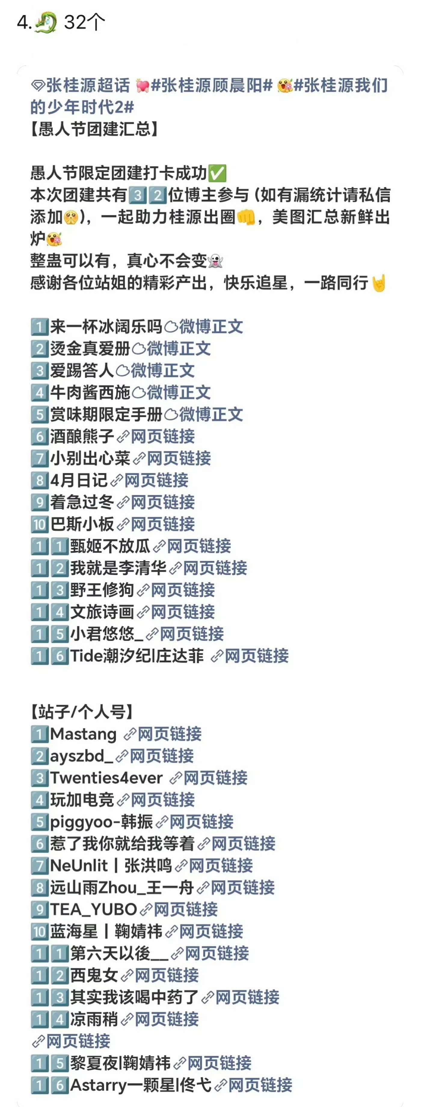TF四代愚人节站姐团建汇总TF四代愚人节站姐团建TF四代愚人节站姐团建明细表,符合你体感吗?欢迎评论区查漏补遗!王橹杰101,陈浚铭92,张函瑞77,张桂源32 杨博文20,左奇函15,陈奕恒14,陈思罕13
