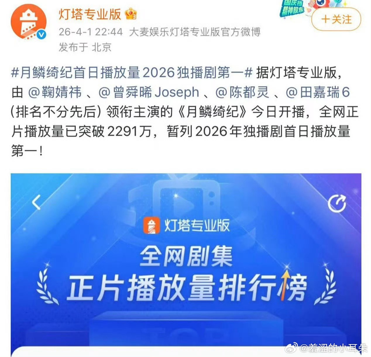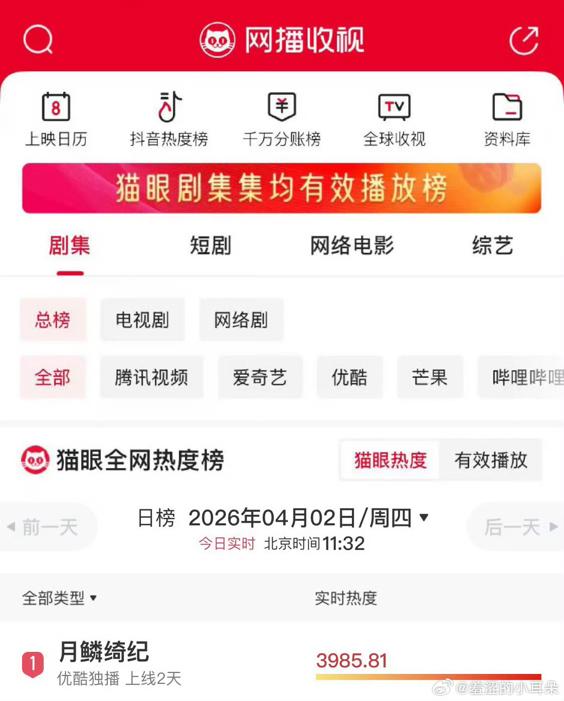 月鳞绮纪登顶👖月鳞绮纪开播不到24小时,各个平台数据都开始登顶了。月鳞绮纪