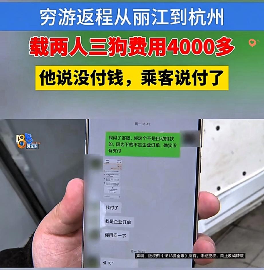 开面包车穷游西藏的大哥,好心接单分摊油费,竟被俩女子白嫖4450块车费! 大哥从丽江拉着她们和3条狗,开了两天两夜2505公里到杭州,对方说平台付款30分钟到账,转头就溜。 结果钱没影,平台说没收到,俩女子还拿伪造的付款截图耍赖,报警、找媒体都嘴硬到底。 这哪是忘付款,分明是揣着明白装糊涂! 别人风餐露宿的辛苦,在她们眼里就是活该免费服务。 最恶心的是拿假截图耍无赖,把别人的善意踩在脚下,这种人真该为自己的自私付出法律代价。 顺风车本是互相体谅的便利,被这种人搞臭,以后谁还敢好心接单? 你遇到过这种爱占便宜的人吗?评论区吐槽一波!