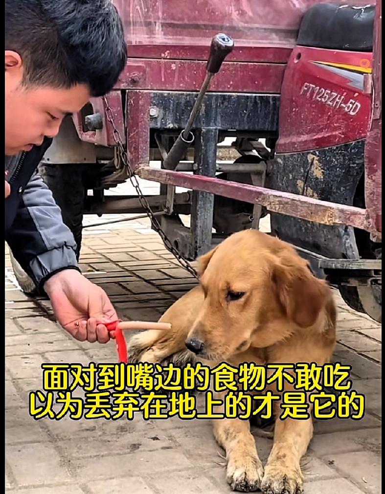 路过的男子看得心疼,买了火腿递过去,狗狗却连闻都不敢闻,满眼都是想逃离的恐惧。