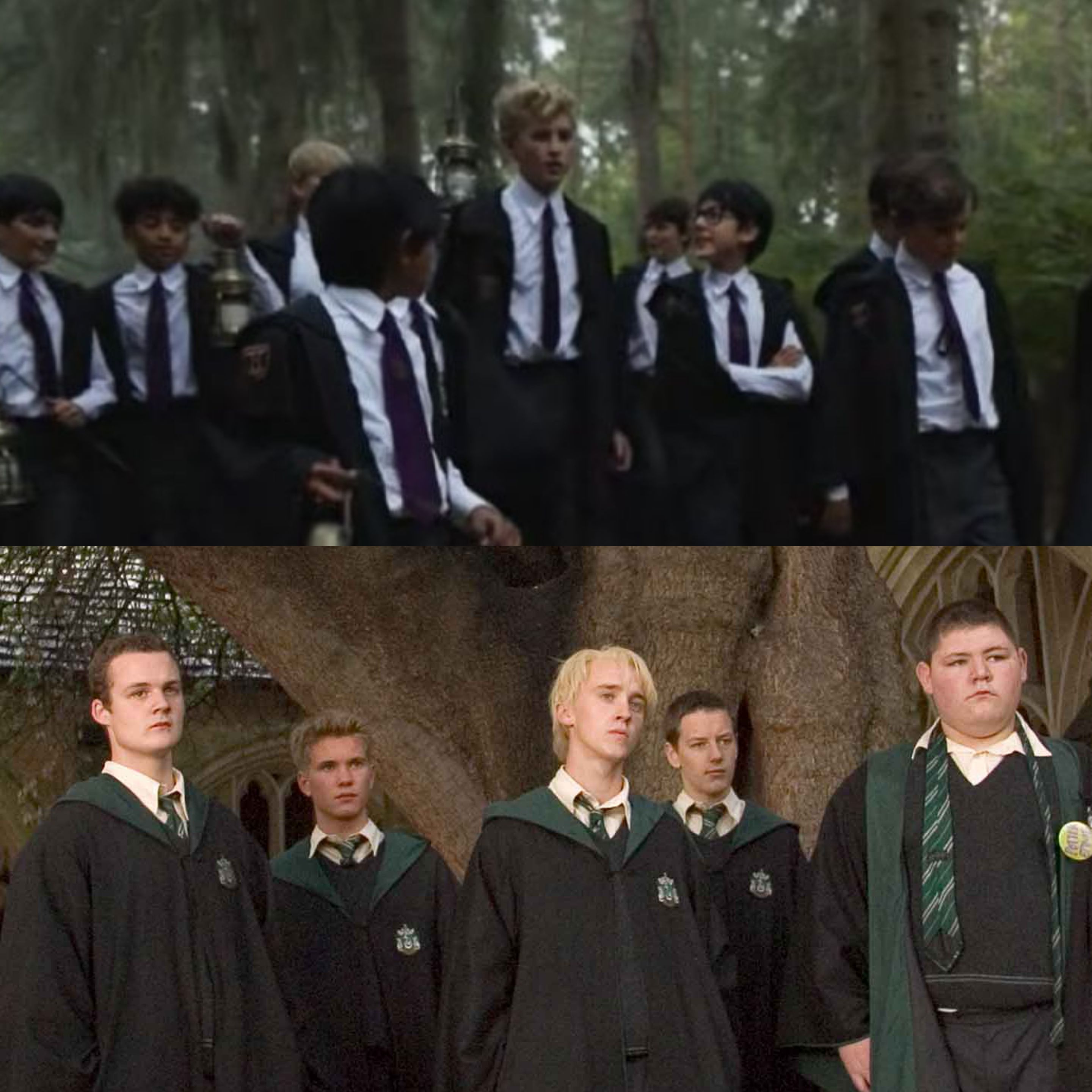 《哈利·波特》剧版和影版校服的不同,剧版的领带似乎是紫色。