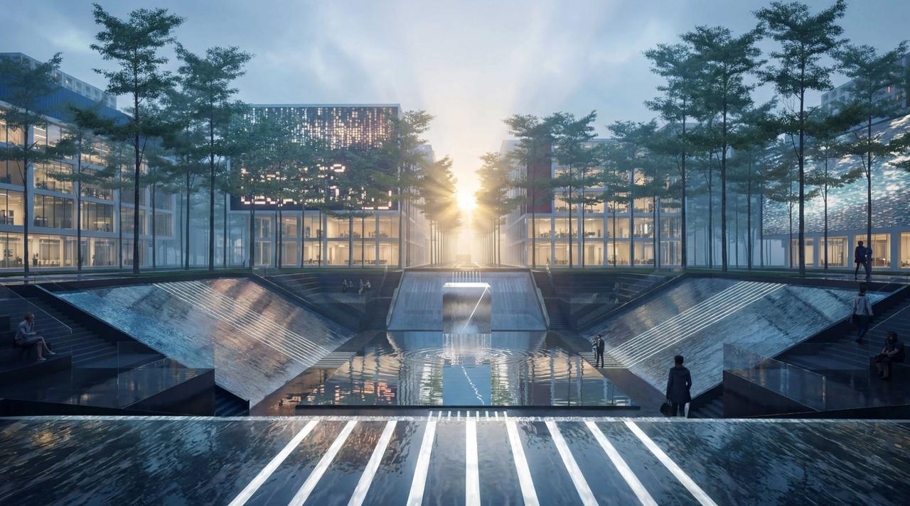 【创新港湾山水芯城!南沙“芯”地标设计理念公布!】“枢纽新城展宏图,潮涌湾区向未来”开建·芯动力科技城二阶段项目开工活动在南沙枢纽先行启动区举行,总投资264亿元的芯动力科技城二阶段项目开工。 该项目的设计华阳国际设计集团最近分享了这个南沙“芯”地标的设计理念。设计团队深挖场地禀赋,以在地性原创设计实现产业、生活、生态功能复合。以「创新港湾,山水芯城」为核心理念,将东方传统造城礼制与现代产业空间规划深度融合,构建「一环、两轴、十二塔、二十四院」整体脉络。从旁侧八涌引水入园,打造1公里景观溪流,再将水系汇入核心总部区的方形下沉庭院,形成「引水入园,四水归堂」的空间格局,象征人才、信息与资源在此汇聚,实现“功能复合、礼序井然、生态共生”的设计目标。