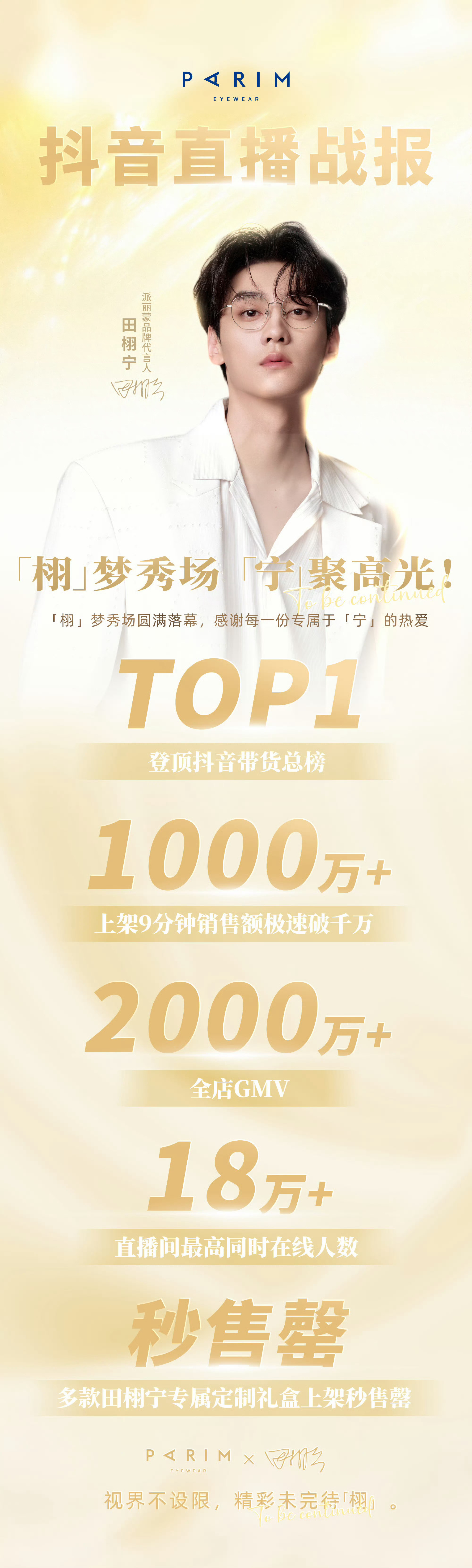 派丽蒙田栩宁战报 田栩宁派丽蒙直播官方战报田栩宁派丽蒙直播官方战报来袭:全店直播GMV突破2000万+;上线9分钟销售额破1000万+;在线人数观看超18万人!商业价值大写的🐮