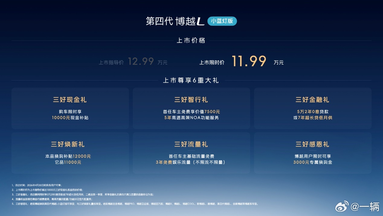 小蓝灯版博越L上市!主要是给浩瀚H3落地11.99万搞定高速领航NOA和城市IC