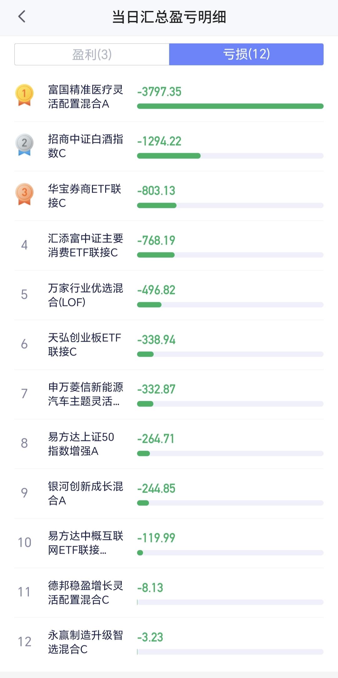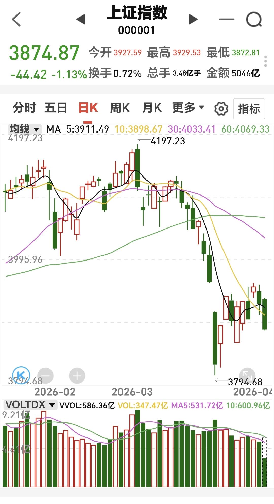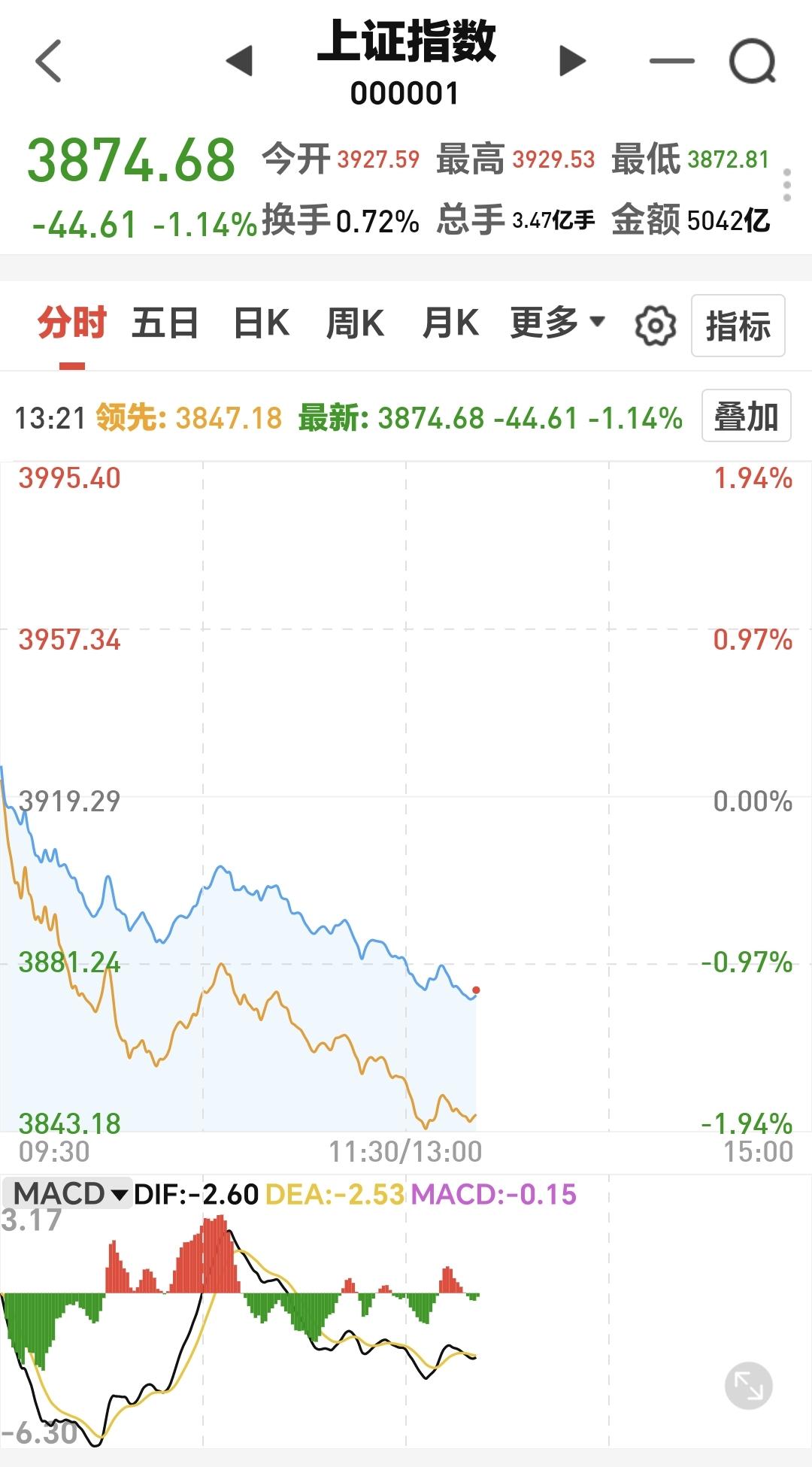 基金:不管是上涨还是下跌,都是无效的波动 市场下午开盘以后小幅度震荡向下,创业板指下跌了0.52%,盘中点位3156点,上证指数下跌了1.14%,盘中点位3874点。 整个股票市场,上涨650家,下跌4823家,涨停27家,跌停40家,上涨家数少于下跌家数。 持有的基金中,盘中估值盈利金额最大的三个板块是:5G板块,军工板块,沪港深消费板块,估值亏损金额最大的三个板块是:创新药板块,白酒板块,证券板块,估值整体亏损了7675元。 整个基金市场,上涨7133家,下跌12360家,没有上涨幅度超过5%的基金,也没有下跌幅度超过5%的基金。 图9是今天板块的上涨排行榜,上涨幅度最大的三个板块是:CPO板块,通信板块,黄金板块,图10是今天板块的下跌排行榜,下跌幅度最大的三个板块是:煤炭板块,光伏板块,农林牧渔板块,图11是今天基金的加仓和减仓人数,加仓3207074人,减仓2052635人,加仓人数超过了减仓人数。 整个市场主力资金净流入最多的三个板块是:5G板块,通信板块,通信设备板块,主力资金净流出最多的三个板块是:国企板块,光伏板块,蓝筹策略板块。 1:现在还是黄色线在蓝色线下方,两条线之间的长河还是比较大,这样的情况之下,翻红的难度加大。 2:两市累计成交11788亿,相比于昨天同期缩量了10%,主力资金净流出341亿,这样的成交量也不支持市场上涨。 3:现在五天线位置是3911点,盘中点位3874点,是在五天线之下的震荡,只有站上并站稳五天线,市场才有转强的可能性。 4:消费电子板块日线级别下跌跌破上涨通道的下轨线以后,形成了一个新的短期下跌通道,前段时间又下跌跌破了这个短期下跌通道的下轨线,短线持有的人需要注意风险。 消费电子板块周线级别处于上涨通道中,距离上涨通道的下轨线比较近,近期观察会不会有效破位这个上涨通道的下轨线,如果有效破位了这条下轨线,长线持有的人也需要注意风险。 5:化工板块前段时间下跌跌破了日线级别上涨通道下轨线以后,形成了一个新的短期下跌通道,现在是在这个下跌通道当中震荡,短线持有的人需要注意风险,这个板块第一次注意风险的时间,就是跌破上涨通道下轨线的时候。 化工板块周线级别处于上涨通道中,距离上涨通道的下轨线比较近,近期观察会不会有效破位这条下轨线,如果有效破位了周线级别上涨通道的下轨线,长线持有的人也需要注意风险。 6:商业航天板块日线级别处于下跌趋势中,前段时间下跌跌破了日线级别下跌通道的下轨线,进入加速下跌走势,短线持有的人需要注意风险。 商业航天板块周线级别处于上涨通道中,距离上涨通道的下轨线很近,在有效破位上涨通道下轨线之前,长线持有的人都可以继续持有,周线级别上涨通道的下轨线是长线持有者的持有条件。 有些上涨是无效的上涨,有些下跌是无效的下跌,只有改变现有趋势的涨跌,才是有效的涨跌,今天只要收盘点位在3852点至3955点之间,不管上涨还是下跌,都是无效的波动。 今天究竟应该怎么办?我会在评论区留言。 大家帮忙评论,点赞,转发和分享,谢谢大家的支持。