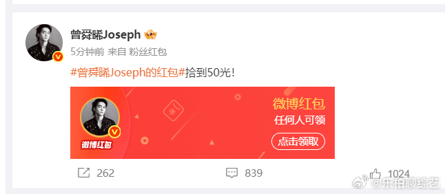 曾舜晞又又发红包了 真不愧是我们大少爷啊,看曾舜晞2万剧宣红包,太给力了吧,我都