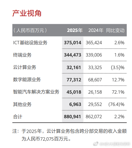 其他业务;像ICT、终端业务 体量已经很大,都在3000亿以上的规模,这年基本上只有一两个点的扩张;其他增速比较快的业务就是数字能源业务,也只有12.7%;所以汽车的增速是非常可观的,是华为业务中(最)关键的增长点。