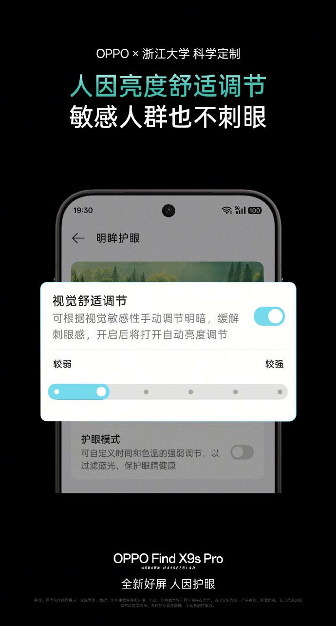 OPPO Find X9s Pro搭载新一代 1nit 明眸护眼屏: 行业首个TÜV莱茵低动态干扰认证,久刷不累眼。 人因科学自研视觉舒适调节,敏感人群专属呵护。 全场景 1nit 暗光护眼,暗光不刺眼,低亮看得清。 十大专业护眼认证,引领行业护眼新标准。 4月21日 19:00 全球首发!