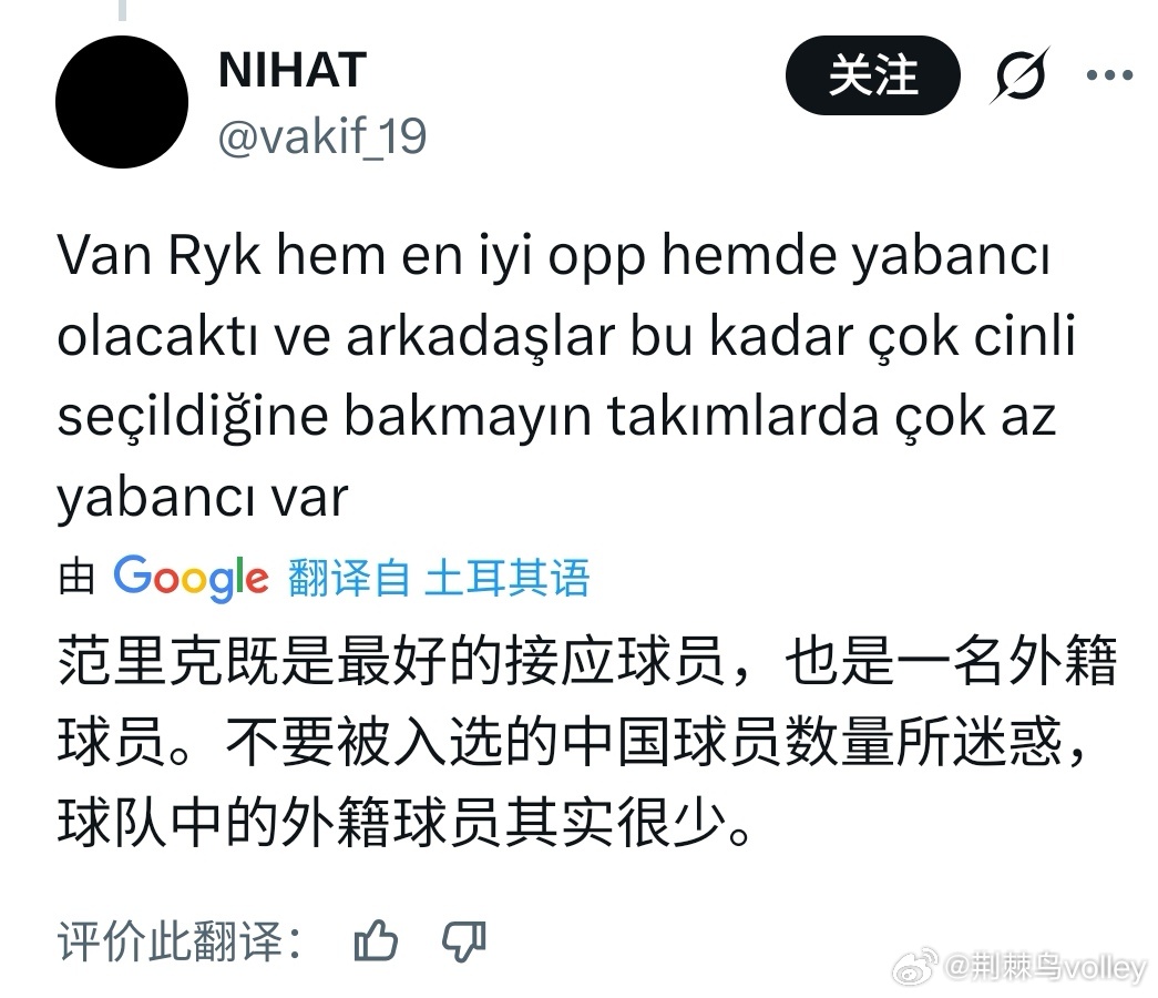 排超最佳阵容被土耳其媒体发到外网,不少球迷对于我朝评选最佳阵容的反应也比较有趣😃。当然也有称赞杨涵玉的。截了几个评论,大家看看就好。