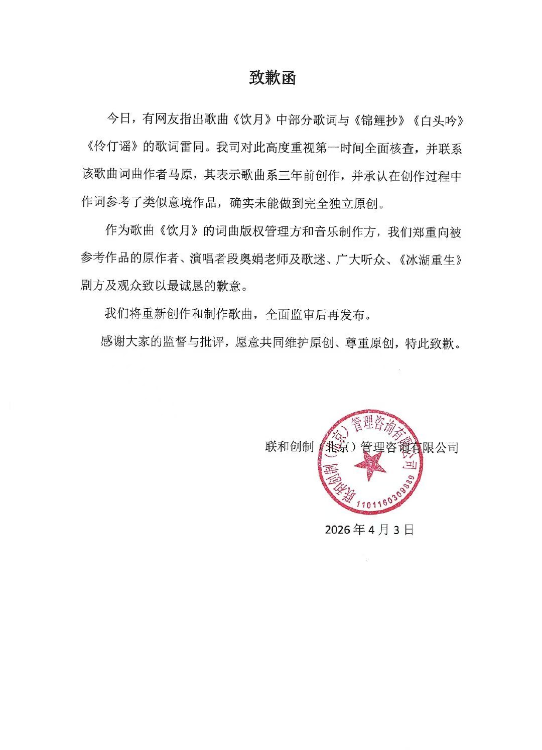 冰湖重生致歉冰湖重生致歉声明冰湖重生致歉声明 反应速度还算快的