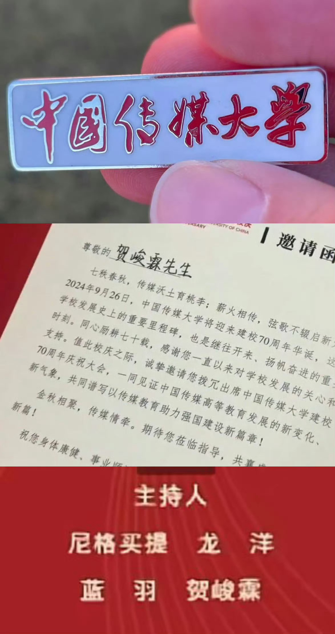 中传校史馆看到贺峻霖了中传校史馆收录贺峻霖啦!主持建校70周年文艺晚会的介绍和留