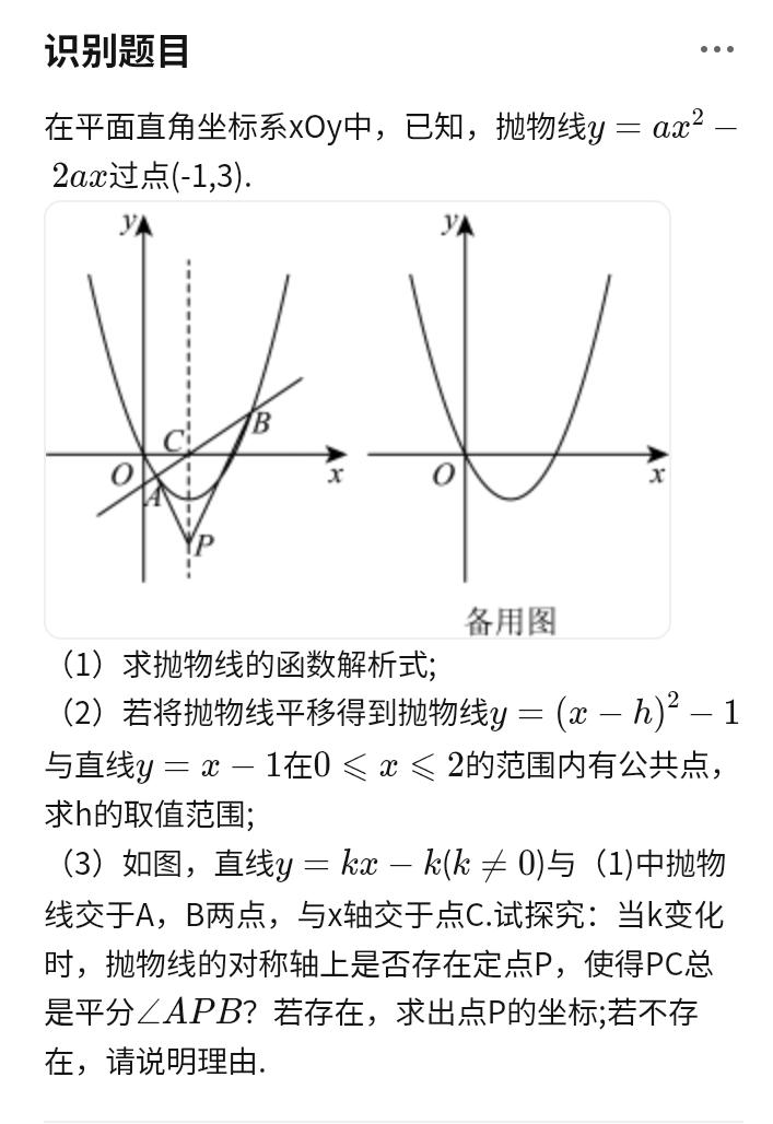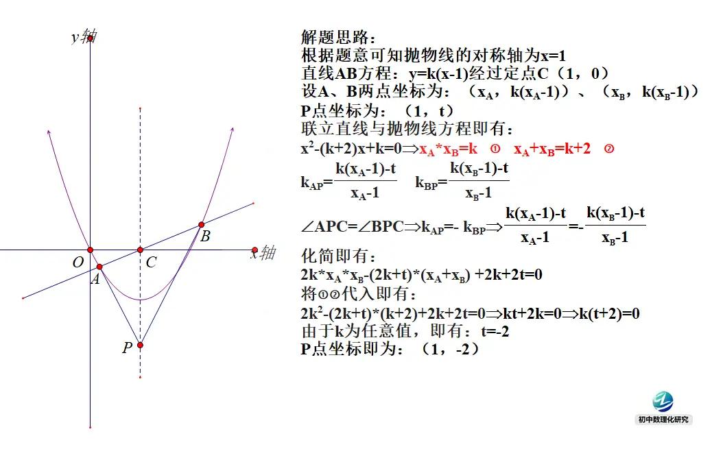 今天我介绍一个有关解析几何的典型题目,解析几何的特点是用代数方法研究几何问题,其中第三问,如何将几何问题代数化是问题的关键。 第一种解法:构造三角形利用三角形相似将交角的问题代数化。 第二种解法:利用斜率公式,将角的问题代数化,相比较而言,我还是比较欣赏第二种方法。