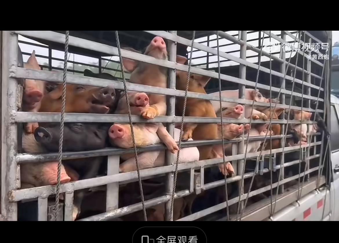 却有这么一群发善心的人,花巨资把它们的命从悬崖边拉回来,组织了多辆大货车,把小猪转运到沈阳一个动物农场,让这些小猪在那边颐养天年。据说在那里已经收养了众多被解救的猪牛羊鸡等动物。