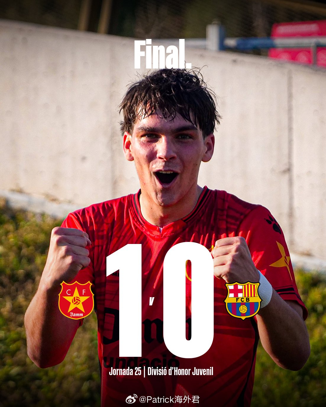 【达姆U19A队集锦汇总】截至第25轮,达姆U19A队本赛季在西班牙U19荣誉联赛(第一级别)第3组高居第四——对阵巴塞罗那两回合一胜一平,主场对阵西班牙人0-0战平,表现不俗。