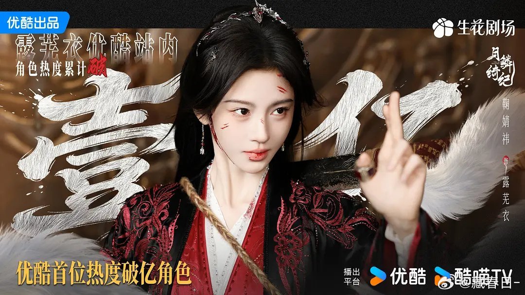 鞠婧祎在酷拍的两部均破万,酷一番破万率100%,角色热度破亿史冠,花间令一个B级制作直接抬成S+级,破万速度当时也是一骑绝尘。