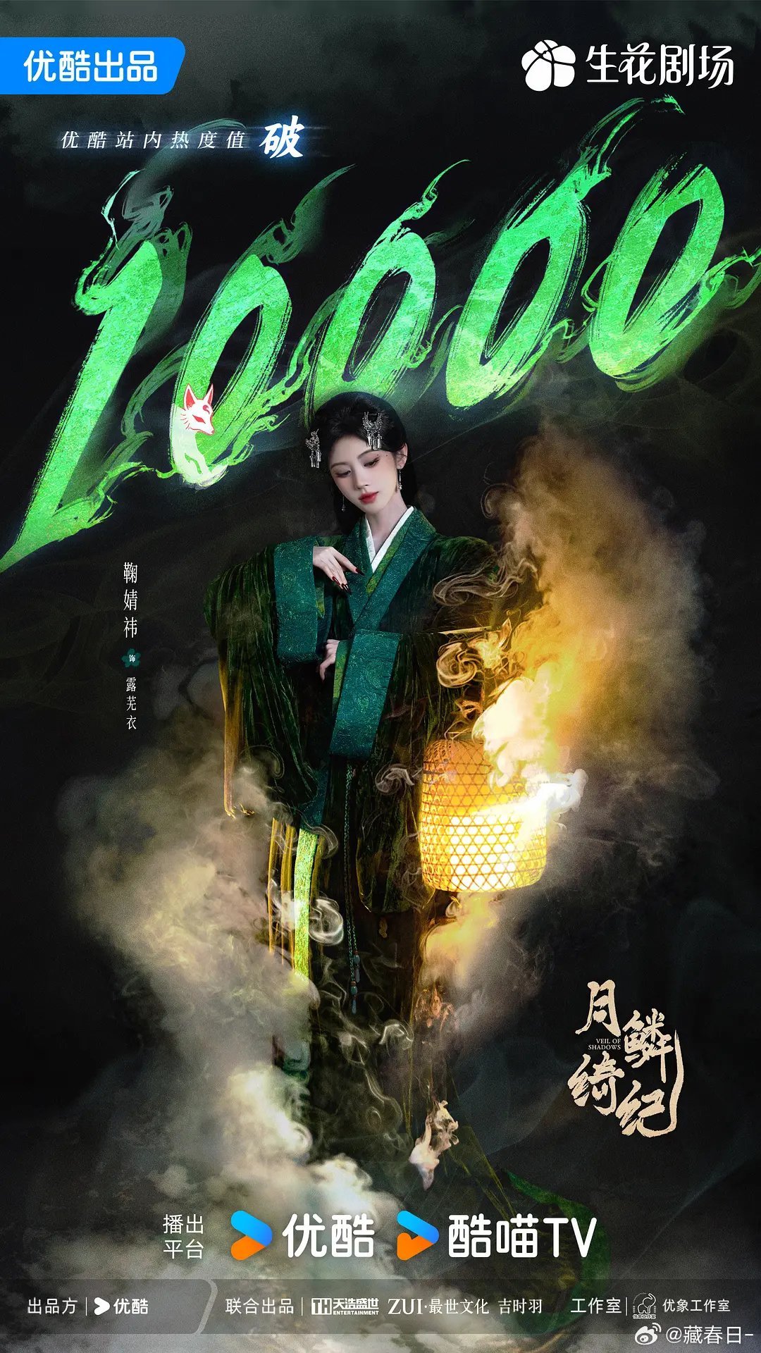 月鳞绮纪更是空降在没有垫热度的情况下,3900多开始爬升,也同样51小时破万,这扛剧能力不用再多说了吧。