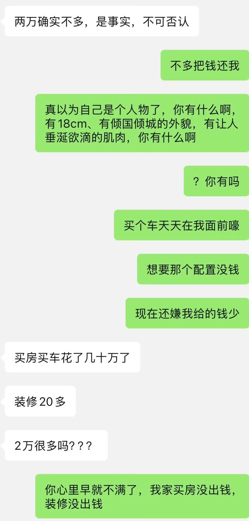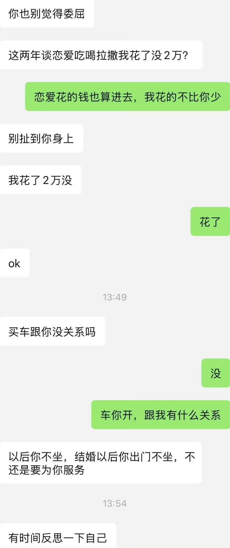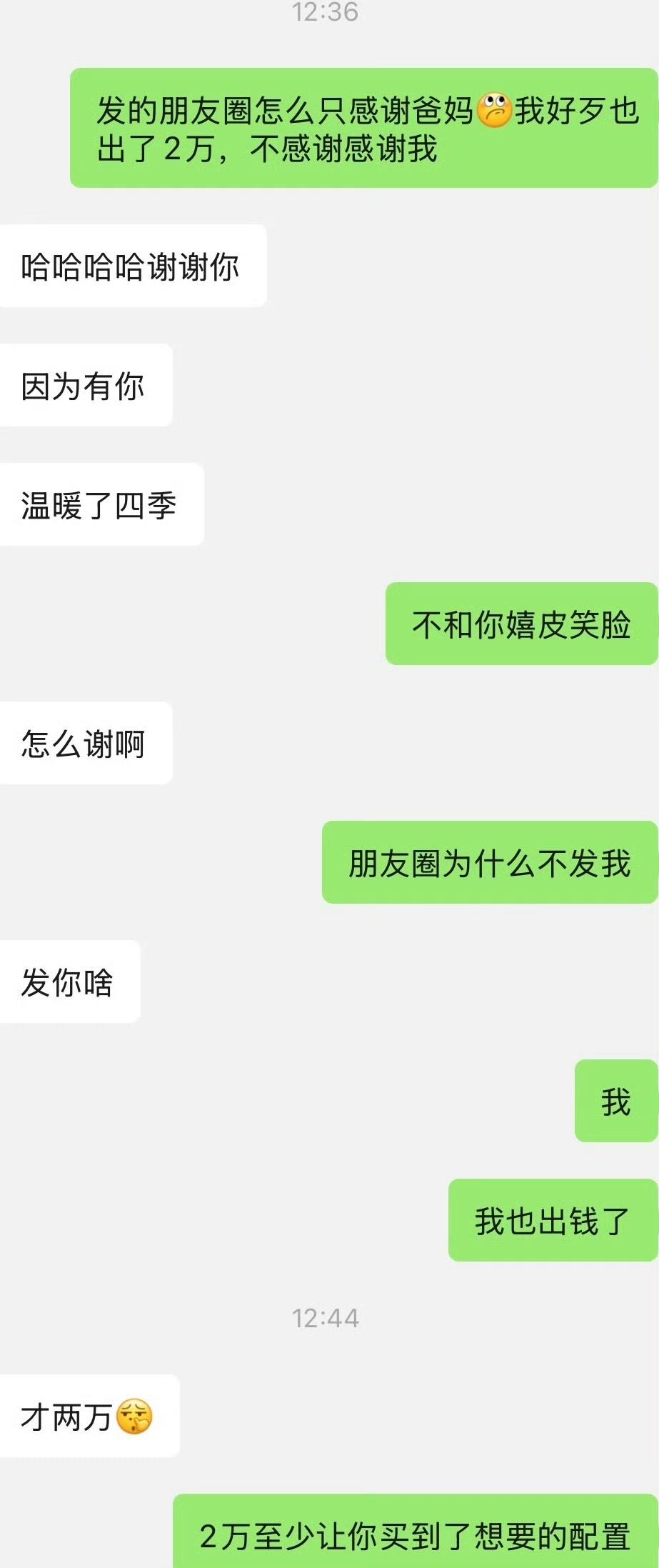 男朋友买车女子赞助 2 万,发朋友圈感谢爸妈,却不提女朋友,女子看到气炸了。直接质问男朋友为啥他买车,微信朋友圈里面专门感谢父母,却不提她。男朋友回复说如果朋友们知道他用了女朋友的钱,这样会显得没面子。女朋友回怼 2 万不是 2 块,如果不是他们有特殊关系,谁会白给他 2 万块钱?女朋友要他把微信朋友圈删了,重新发。男子坚决不同意,说这是面子。看来她的男朋友比较大男子主义,为了买车拿了父母的钱硬要高配,女朋友给他赞助 2 万,可是为了面子却死不承认女朋友的贡献,做人非常虚伪、自私。