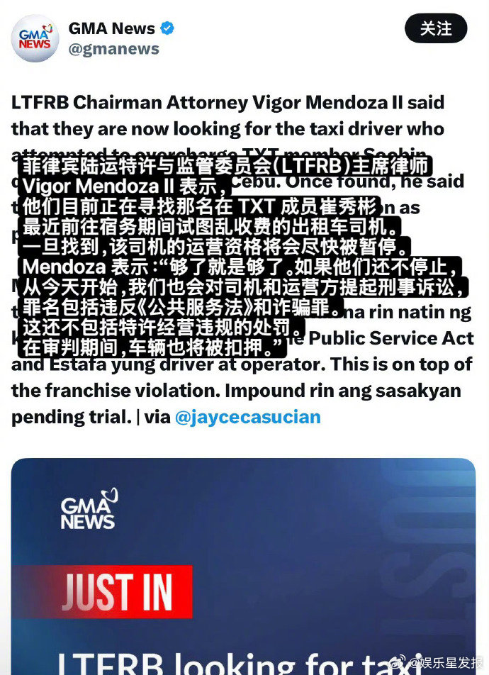 TXT成员秀彬菲律宾打车被宰 崔秀彬在菲律宾出行期间打车被不合理加价,事件发酵后引发当地官方介入。相关部门称将严肃追查该名司机,依法吊销驾照并追究其刑事责任。