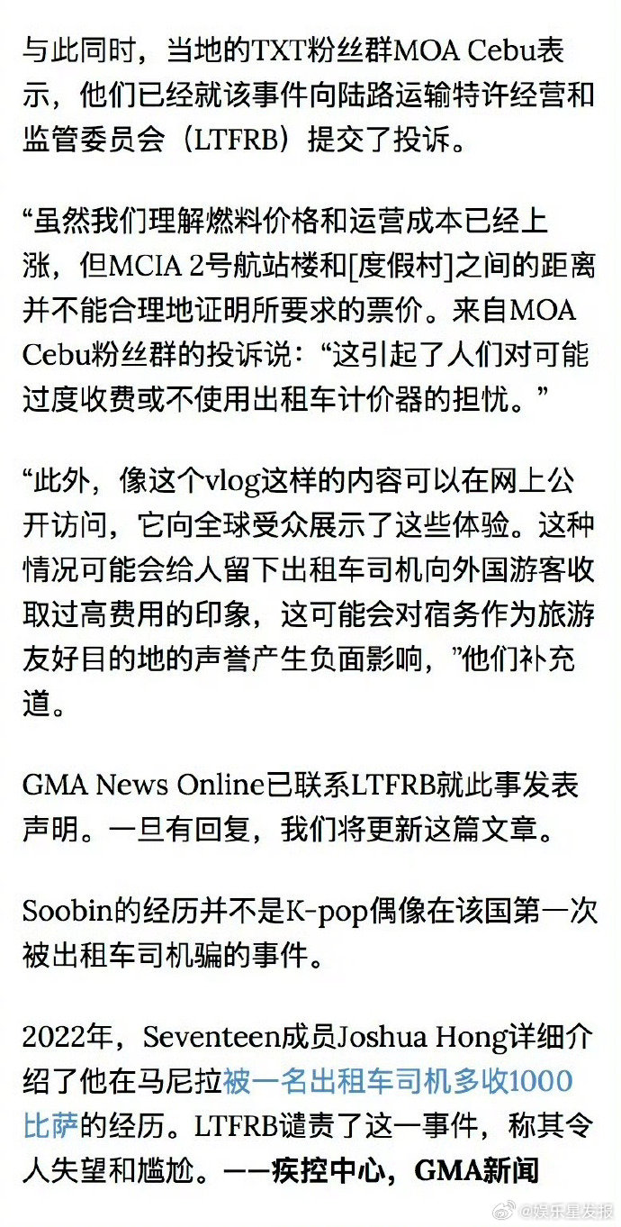 TXT成员秀彬菲律宾打车被宰 崔秀彬在菲律宾出行期间打车被不合理加价,事件发酵后