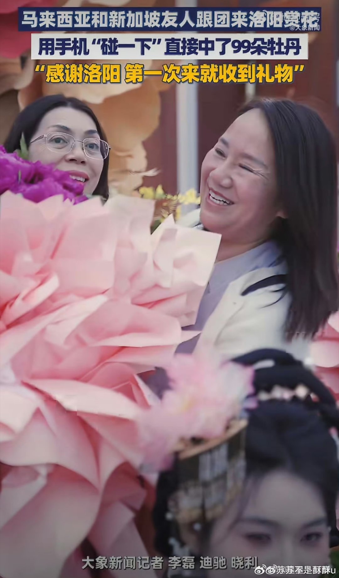 外籍友人组团来洛阳赏花洛阳牡丹迎来国际游客,外籍友人沉浸式感受春日浪漫。超大花束